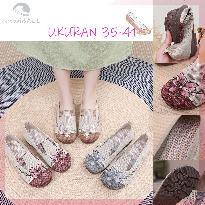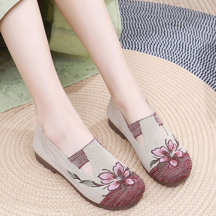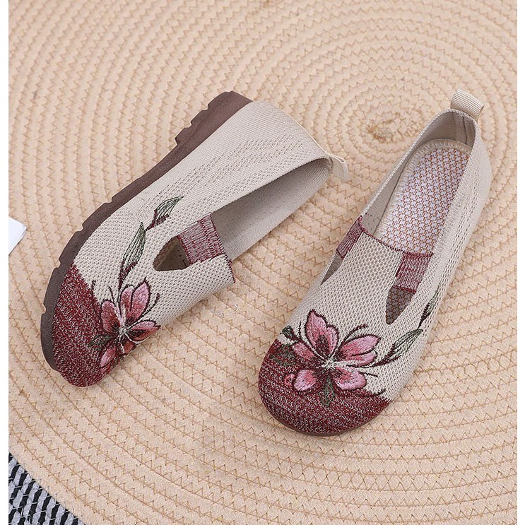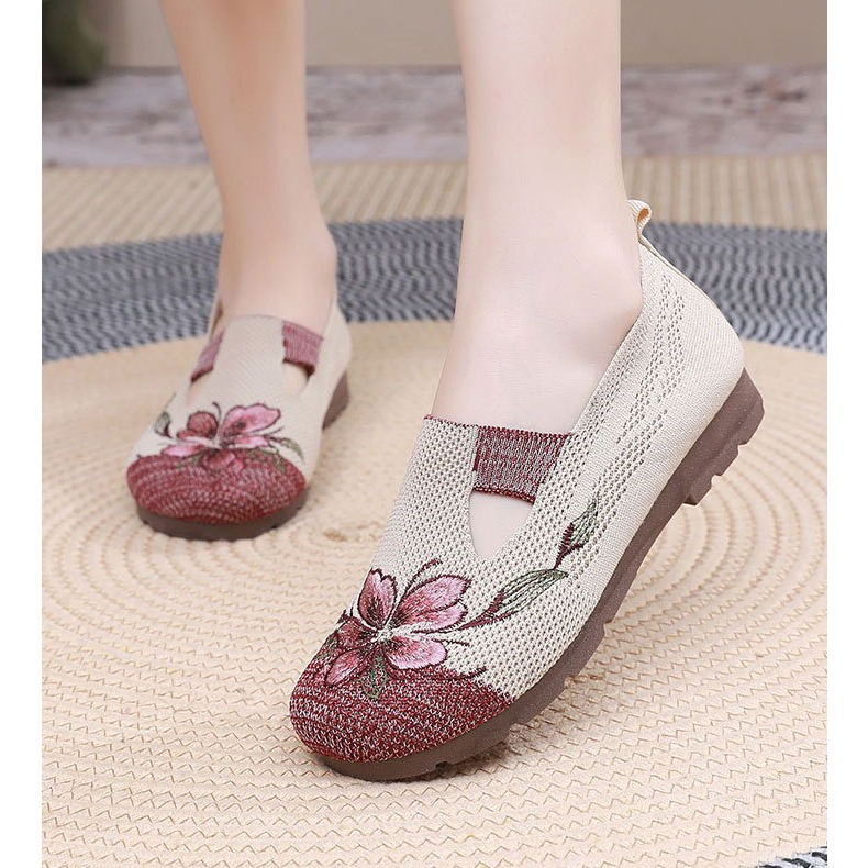 [Ready Stock]Sepatu Wanita Kasual Sepatu untuk Ibu Bernapas Musim Panas Slip-On Tumit Datar HF09