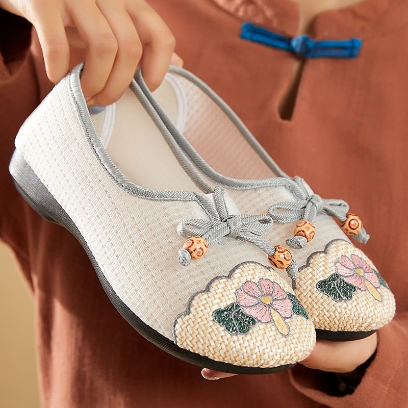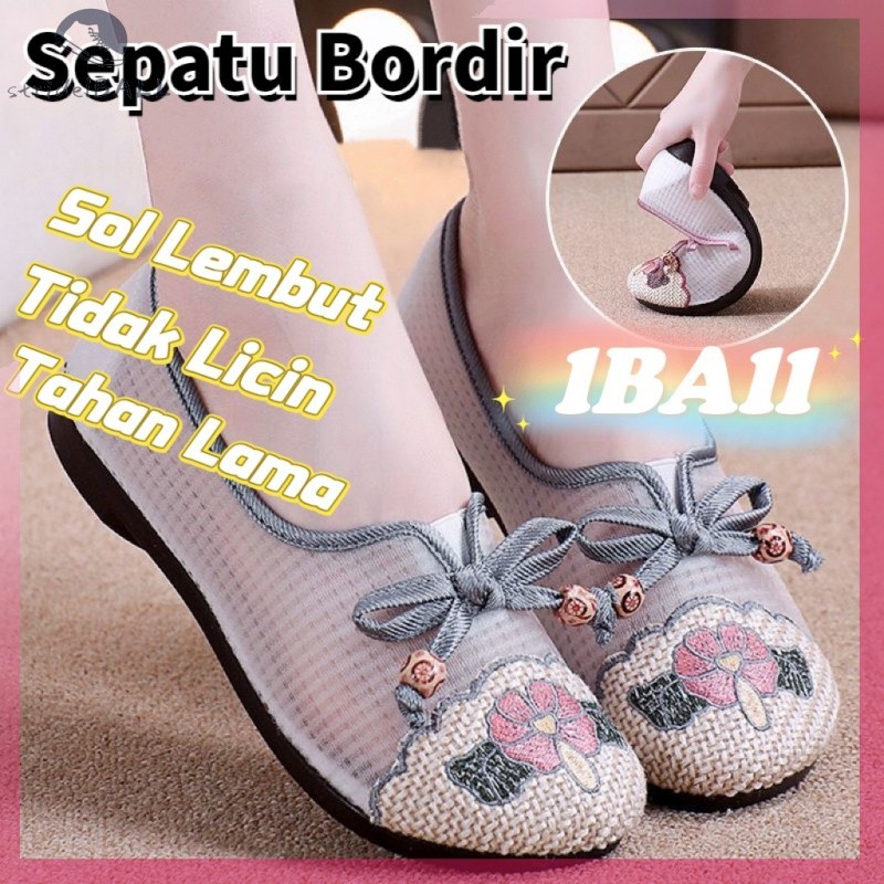 [Ready Stock] Sepatu Wanita Etnik Bordir - Bahan Mesh Tembus Udara & Sol Tebal Nyaman HF02