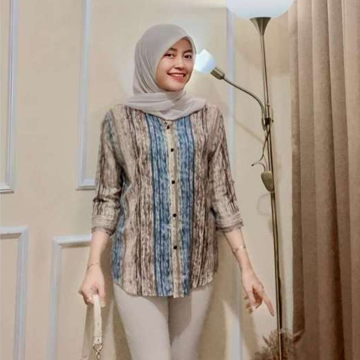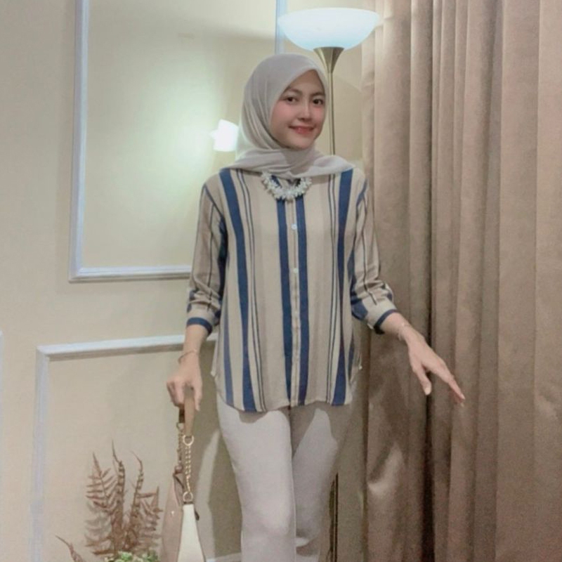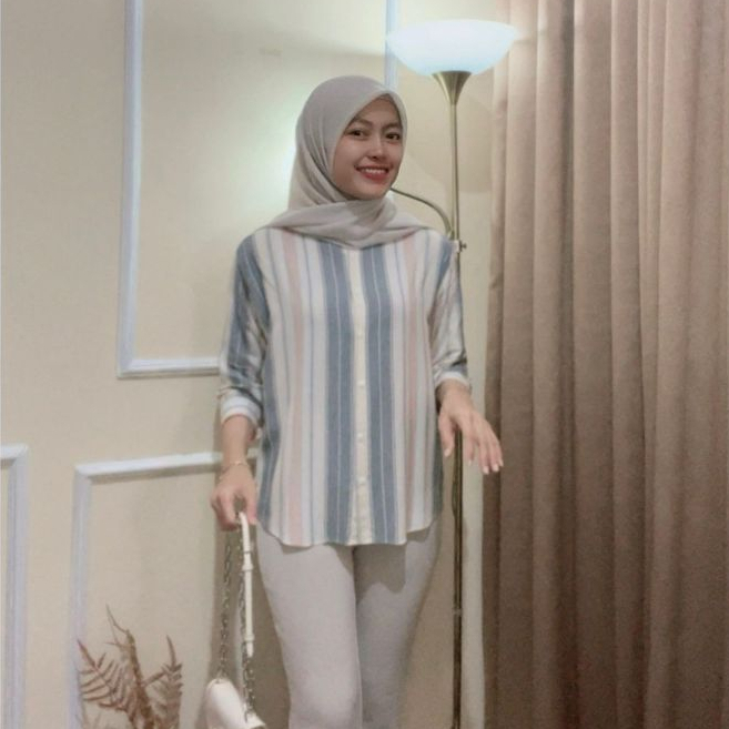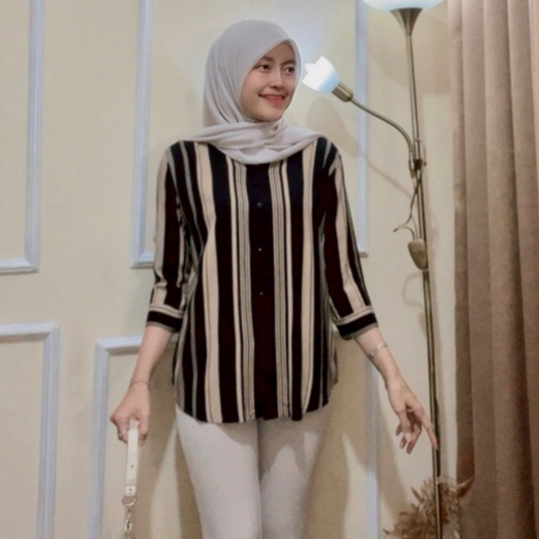 Kemeja Rayon Wanita Motif Oversize Daily Salur Rayon Jumbo Lengan 7/8