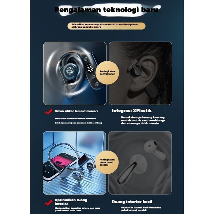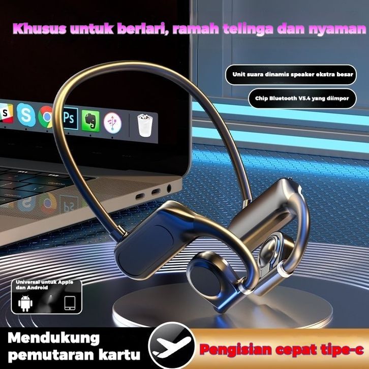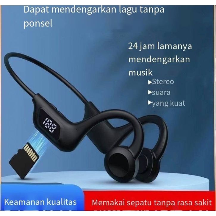 handfree Headset Bluetooth running Konduksi Tulang Nirkabel Olahraga Earphone Lari Kait Simpan Kartu