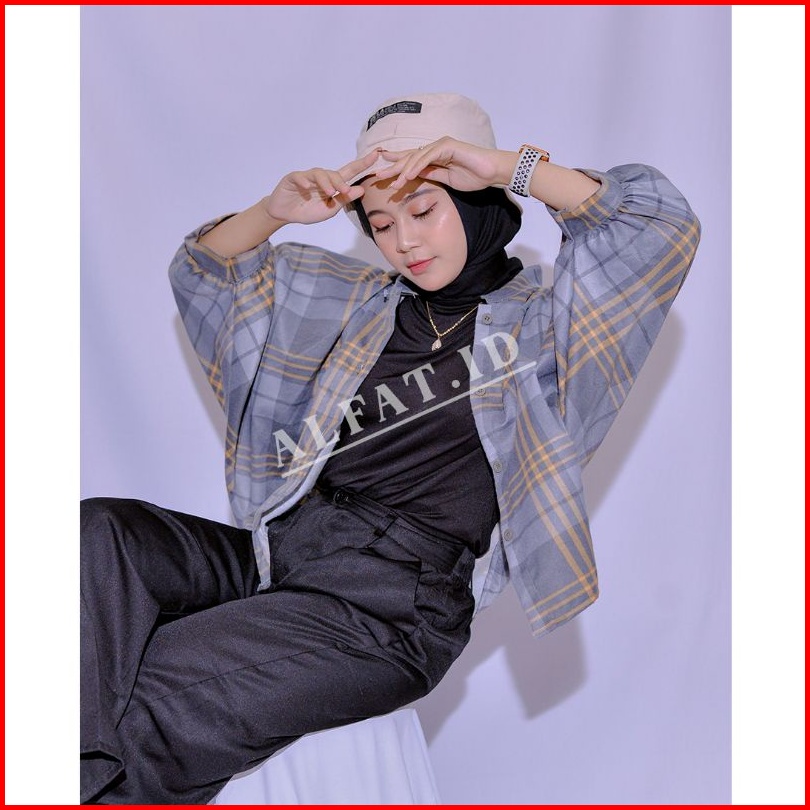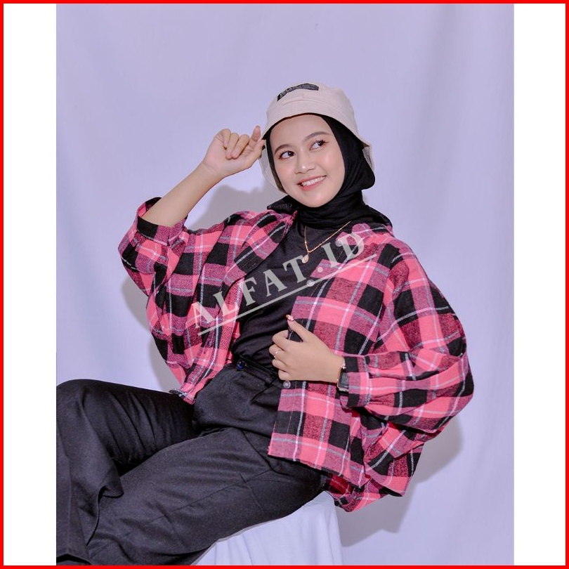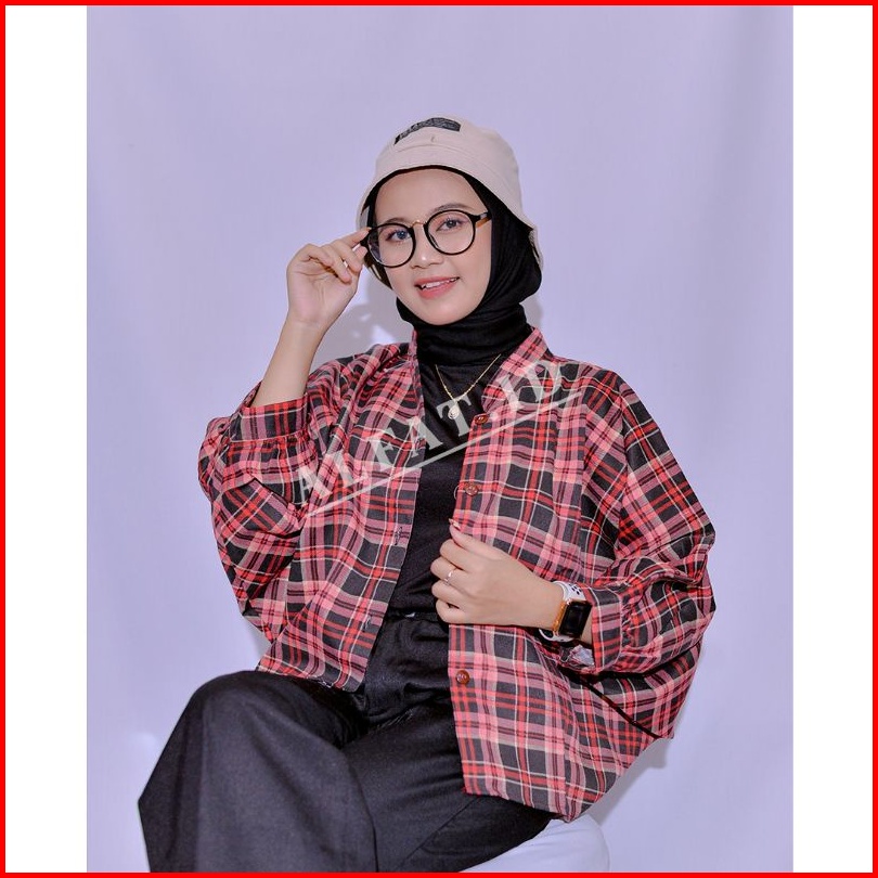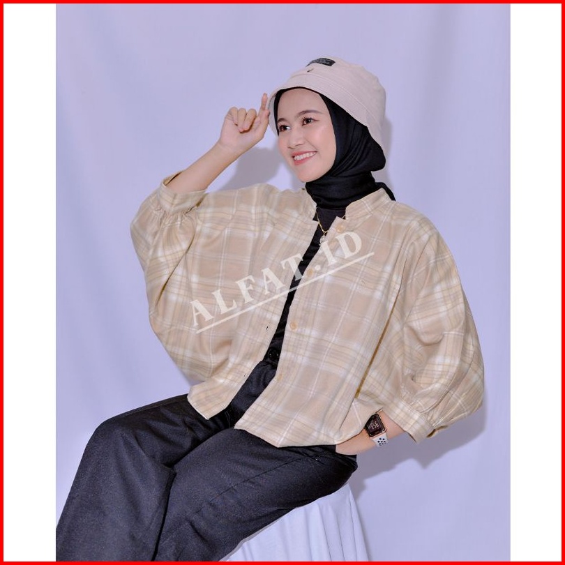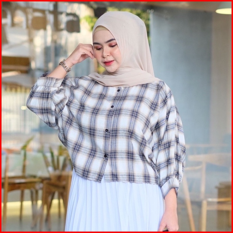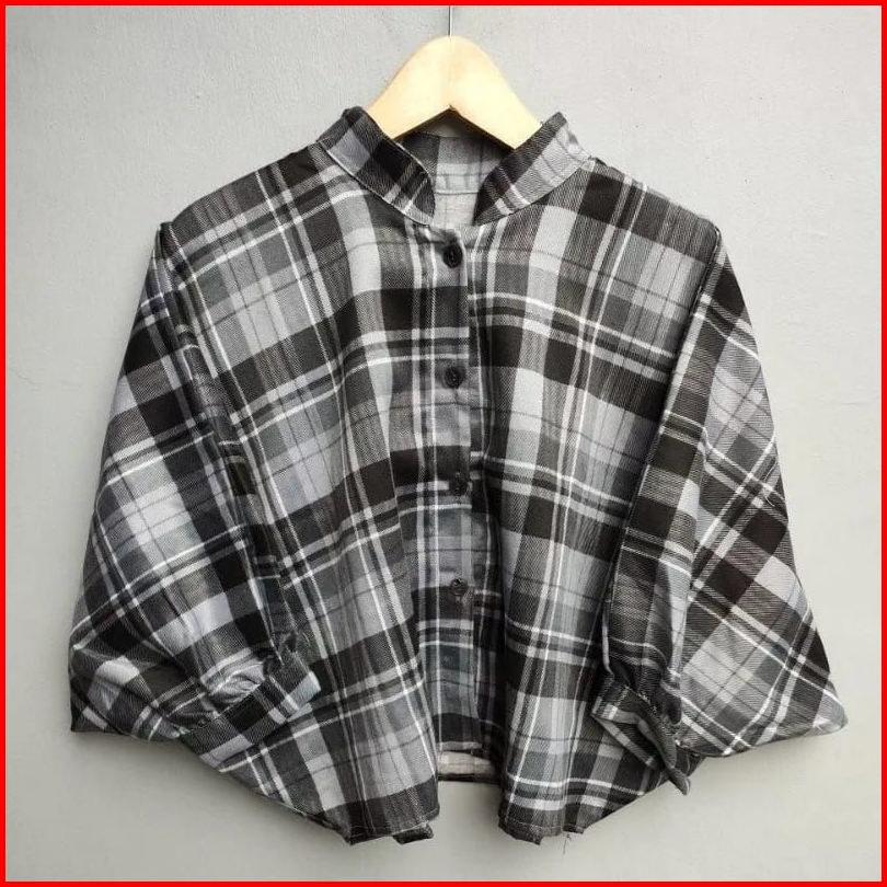 Moyge Batwing Flanel Blouse Crop Outer Kekinian By Alfat.id
