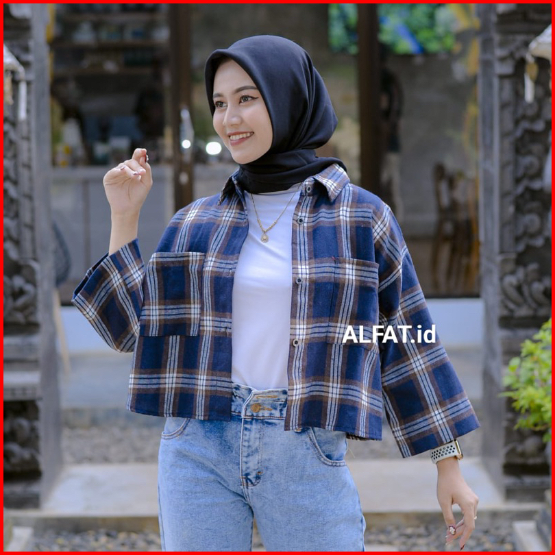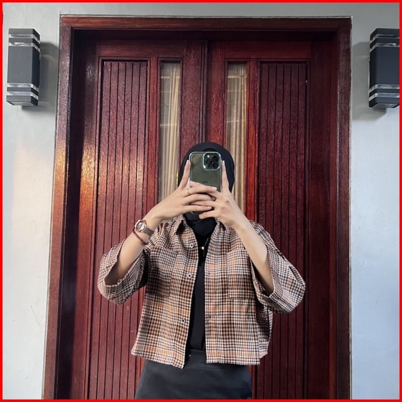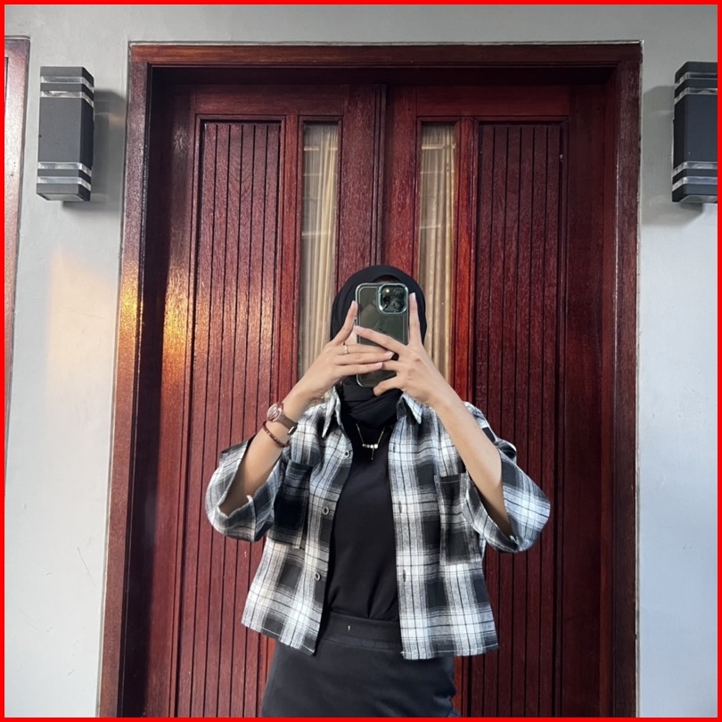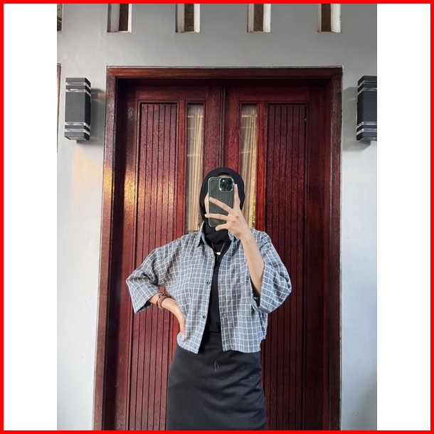 Kemeja Crop Saku Crop Top Saku Kanan Kiri Kemeja Crop Flanel