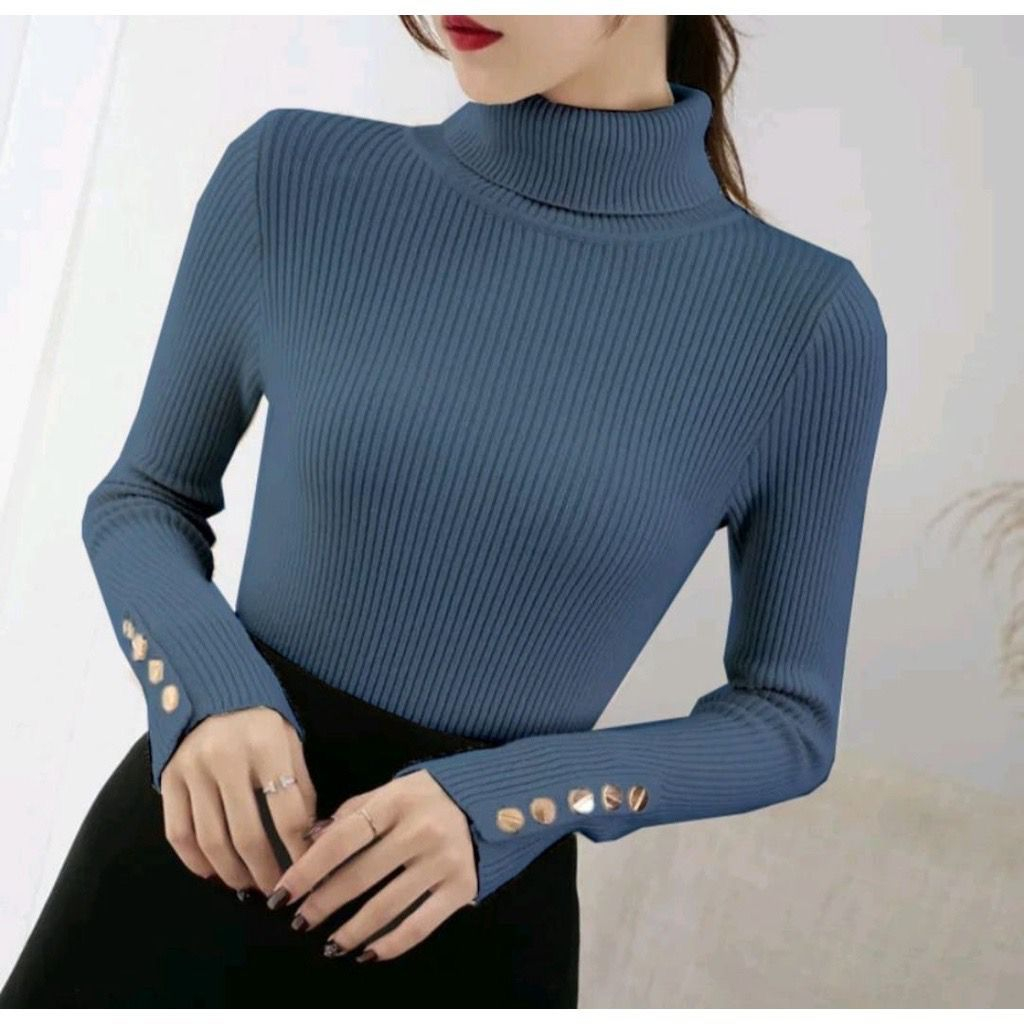 STANDAR & JUMBO SWEATER RAJUT WANITA || TURTLENECK ZIA BUTTON