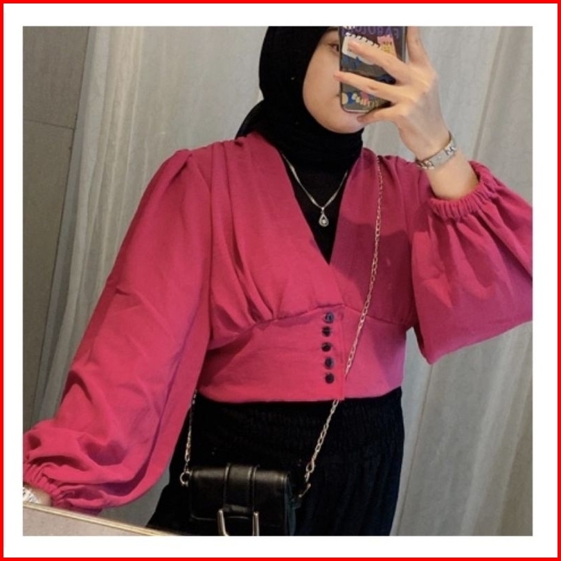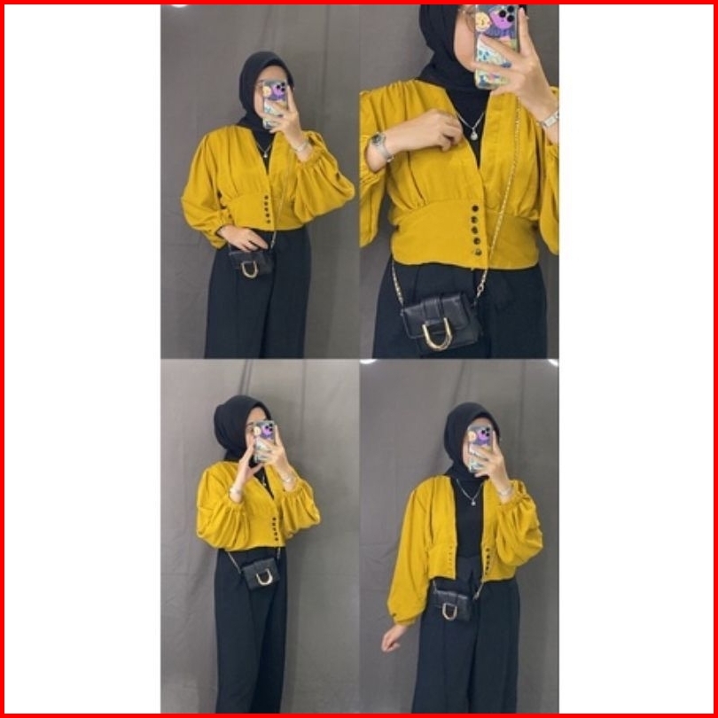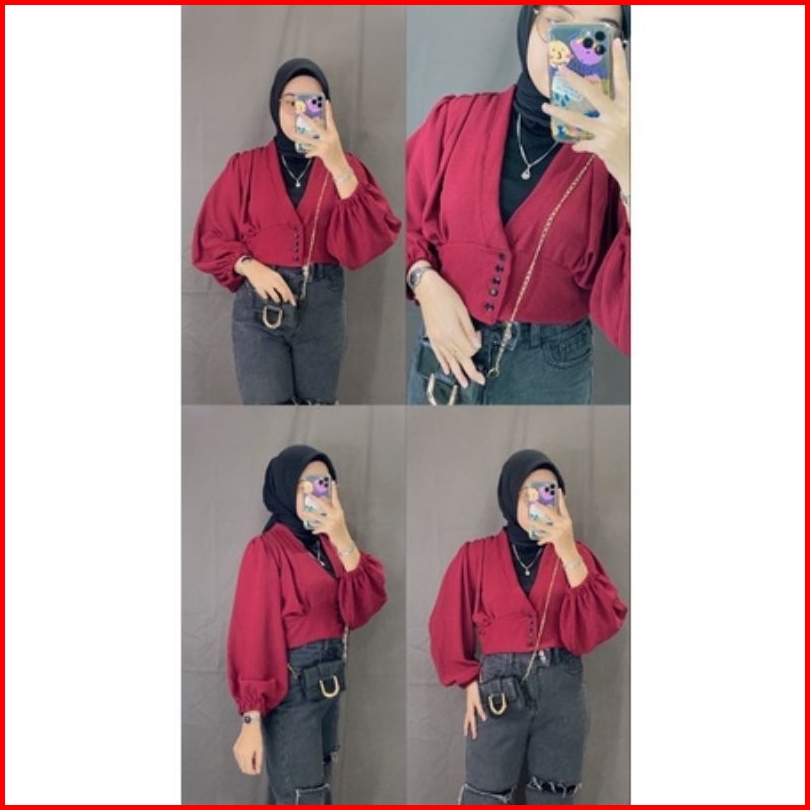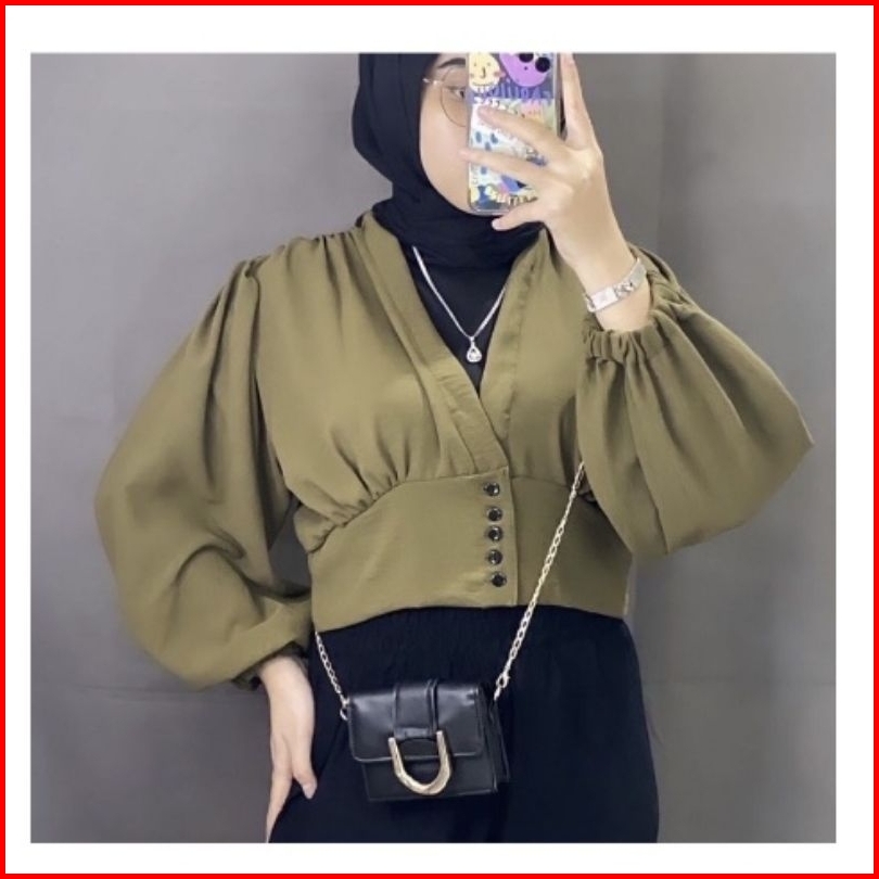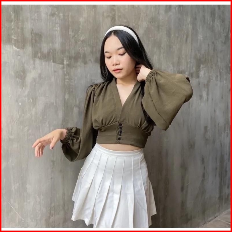 Maurin Blouse Semi Outer Crop Top Blouse Wanita Polo Linen