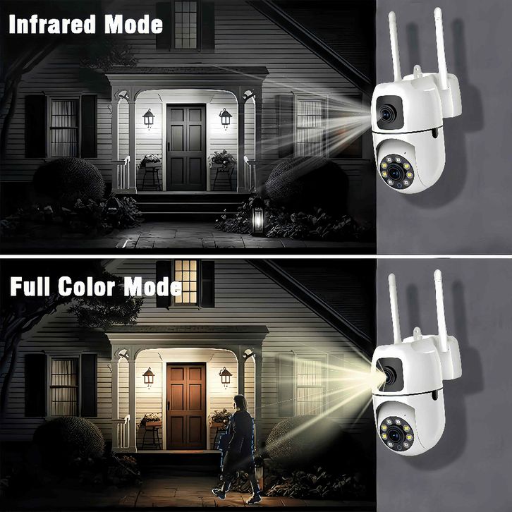 V380 Pro Dual Lens Outdoor Waterproof PTZ Panoramic 1080P Nirkabel Jarak Jauh Kamera