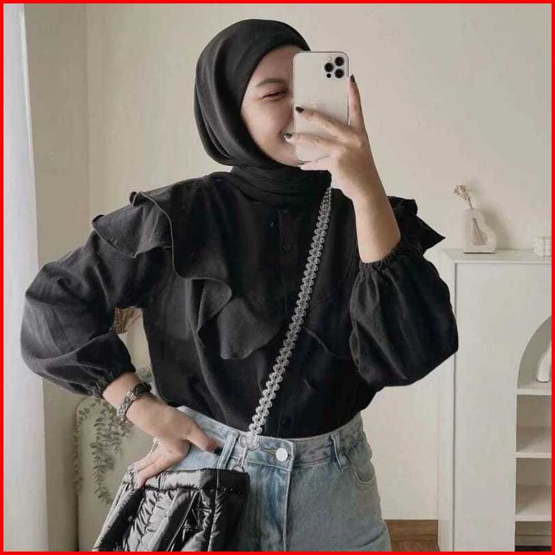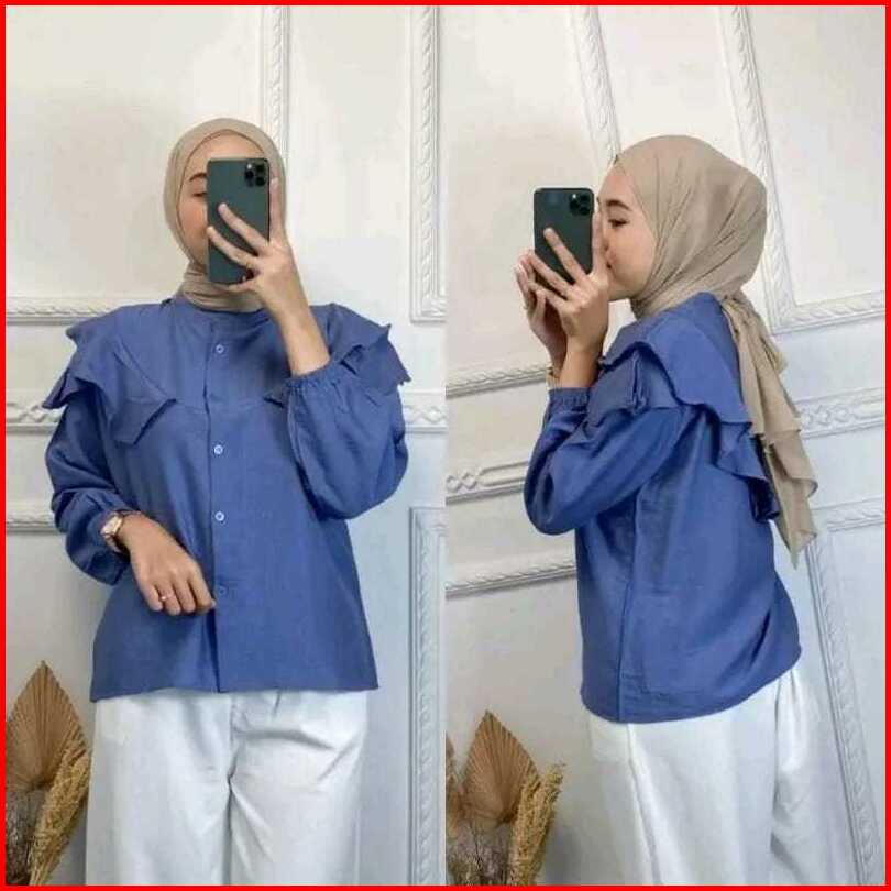 Blouse Ruffle Polo Linen Rafella Kemeja Wanita Terbaru