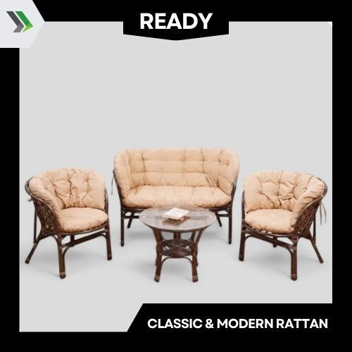 KURSI TERAS DEPAN RUMAH KURSI BAHAMA ROTAN ALAMI 1 SET + BANTAL MEJA PAKE ANYAM MEJA KACA SOFA KURSI ROTAN ASLI