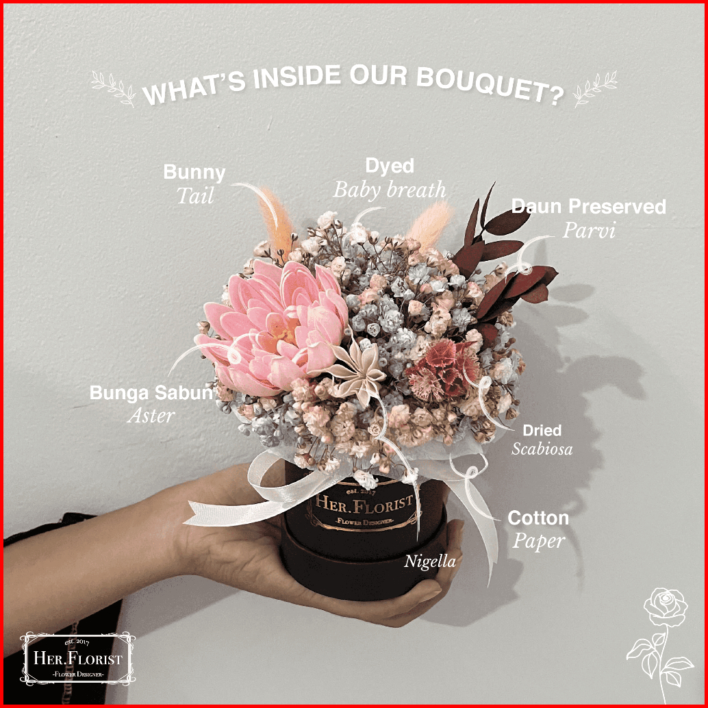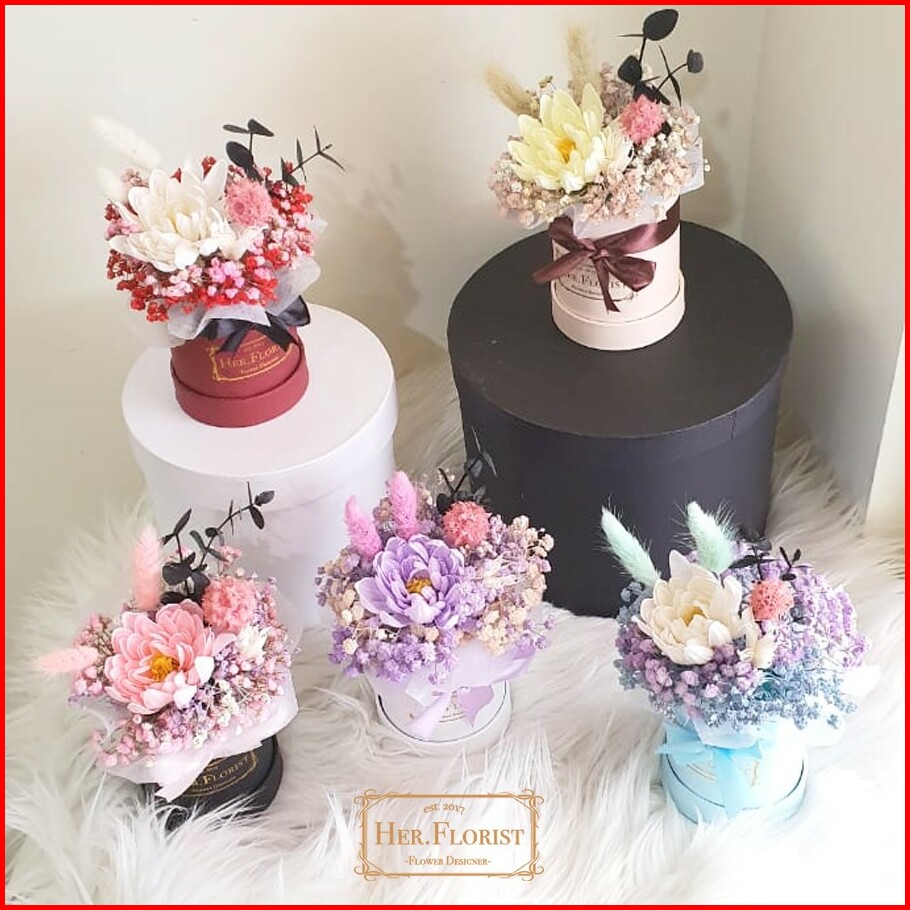 Her.florist Puffie Pearl Small Box Bunga Box Kecil Single Aster Soap Flower Bunga Sabun Aster