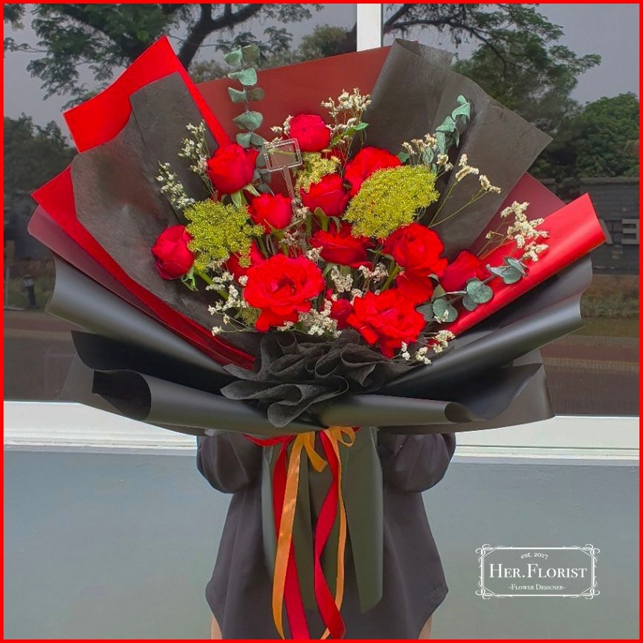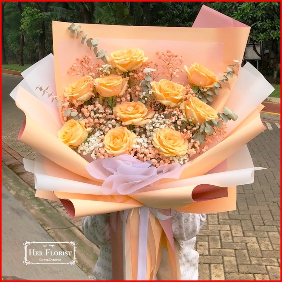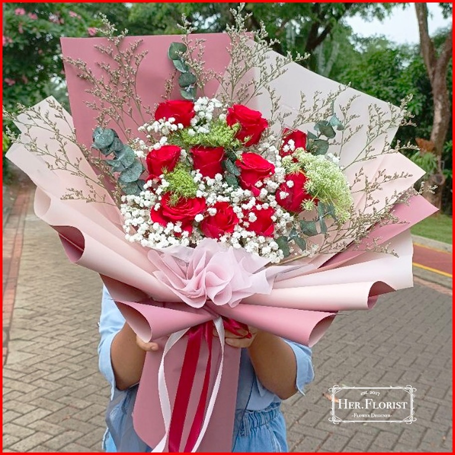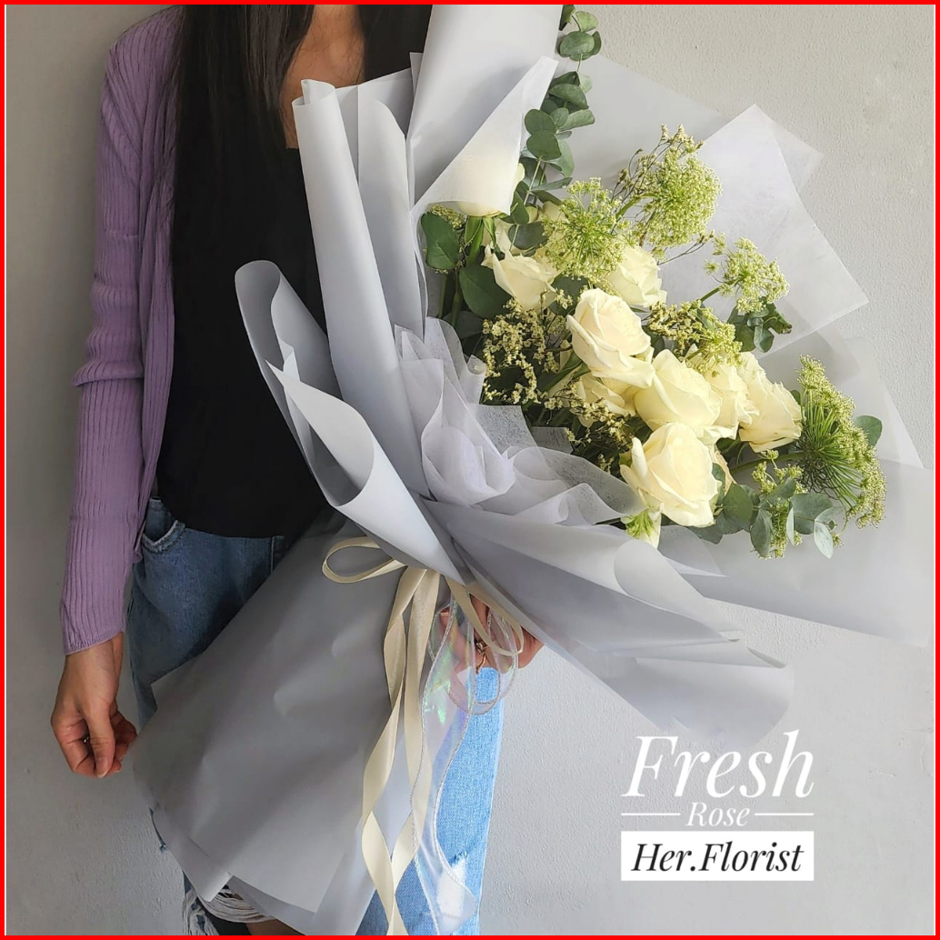 Her.florist Fresh Flower 10pcs Rose Bouquet Buket Bunga Mawar Asli Buket Fresh Flower Buket Wisuda