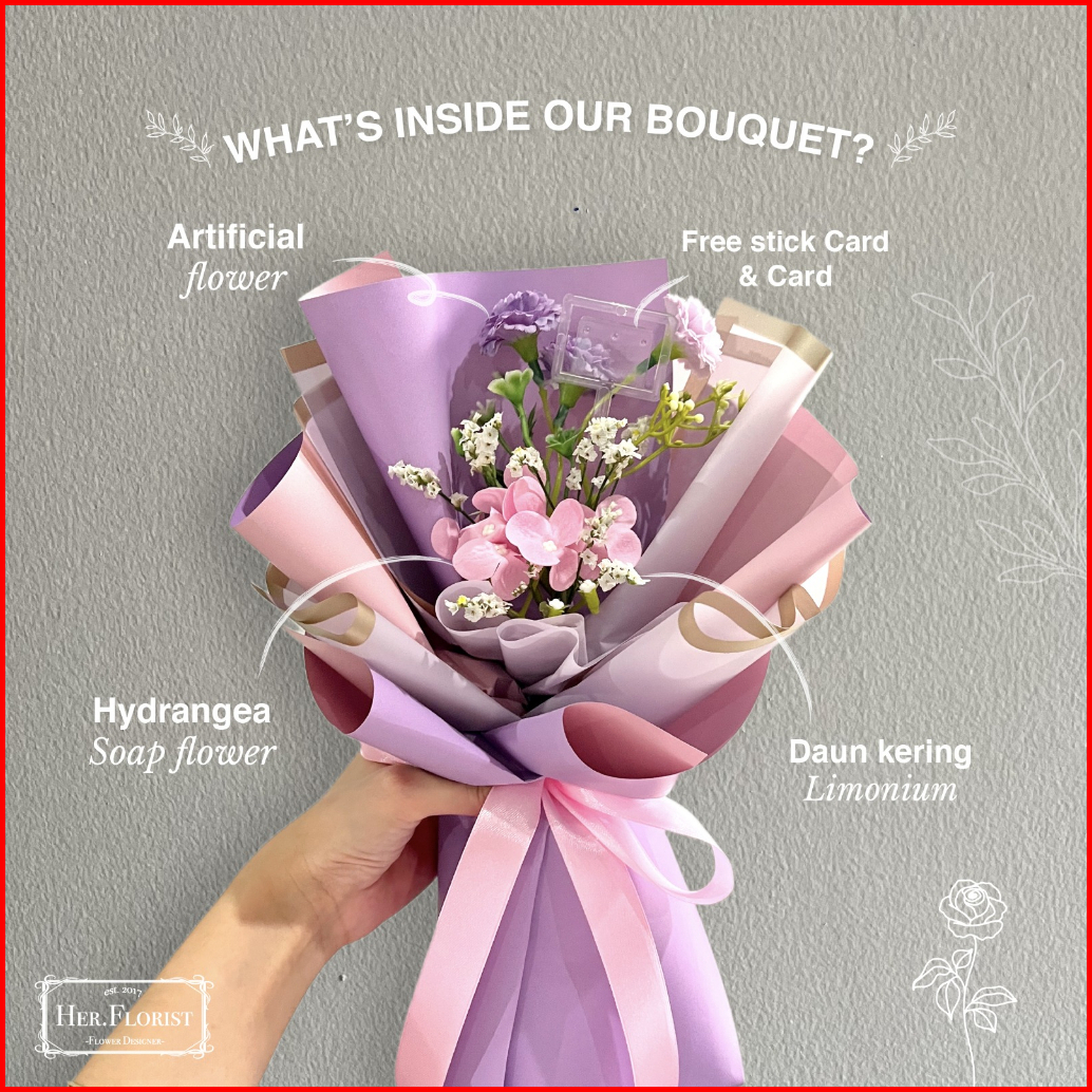 Small Size Her.florist Hydrangea Single Soap Flower Buket Bunga Sabun Hydrangea Bunga Kering Buket Bunga Buket Wisuda