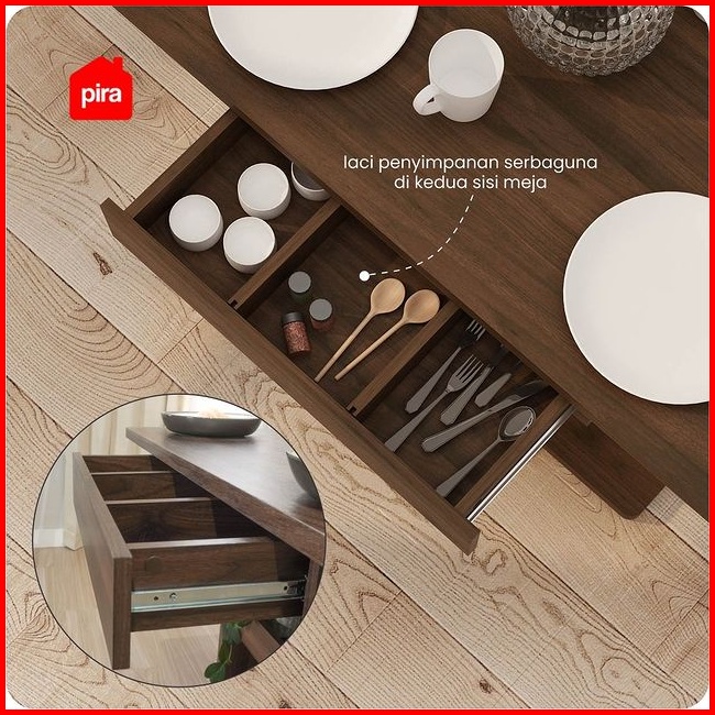 Pira - Tiva Dt110 Set Meja Makan Dengan Laci Penyimpanan