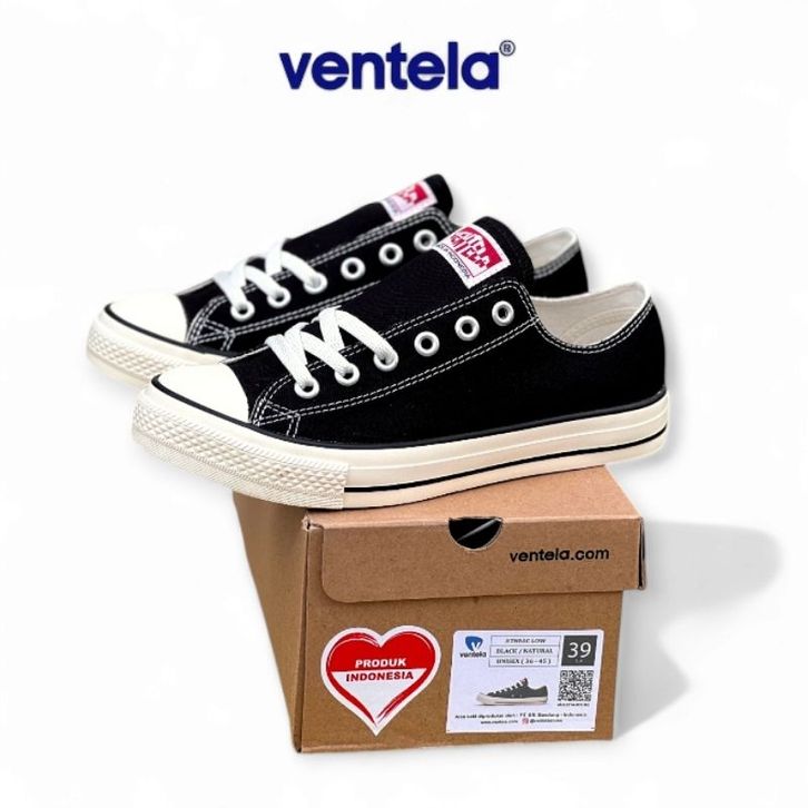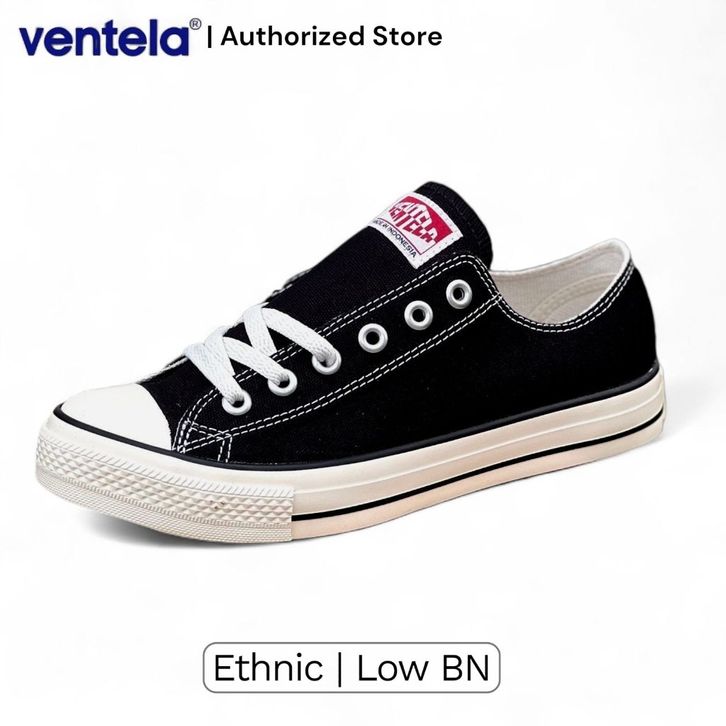 Ventela Ethnic Low Sneakers Hitam Putih Sepatu Casual Pria Wanita Original Sepatu Sekolah Anak Laki Laki Dan Perempuan