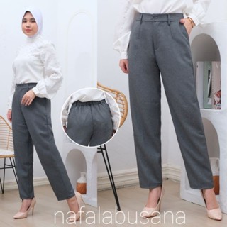 (Gratis Ongkir) Celana Kerja Wanita Highwaist Pinggang Karet Belakang Bahan Dasar Kain Kantor Formal
