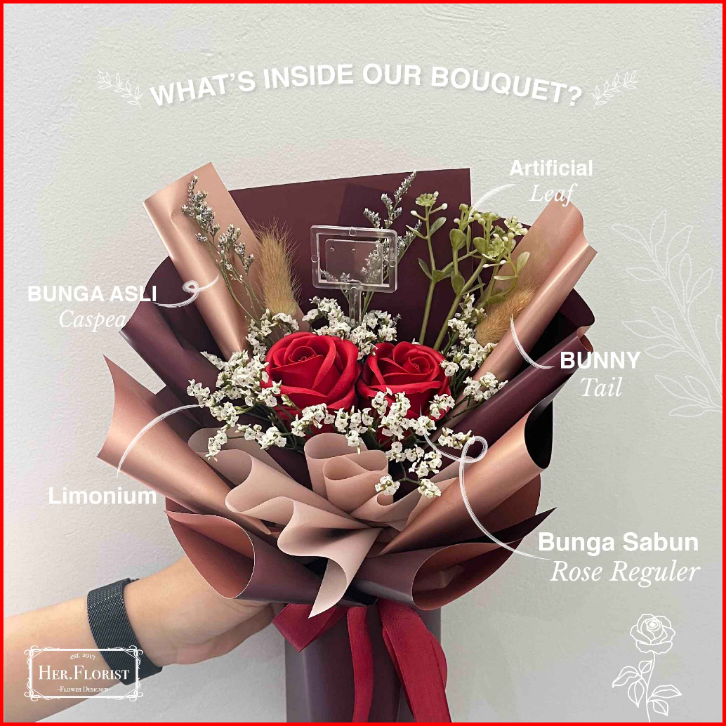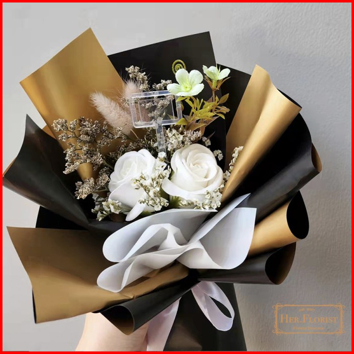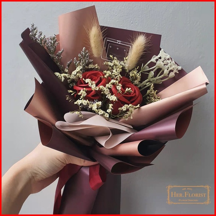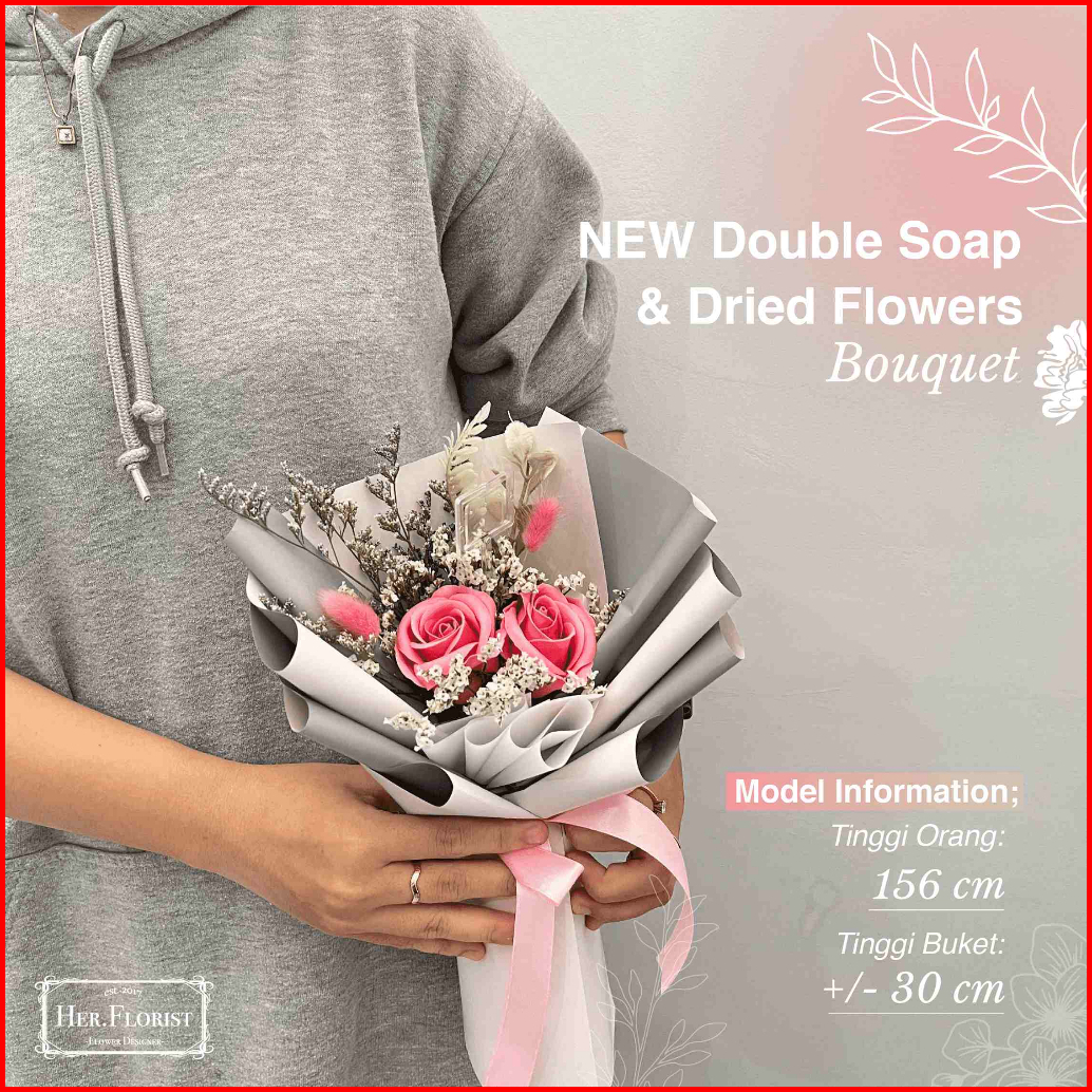 Her.florist New Double Soap And Dried Flower Bouquet Buket Bunga Sabun Dan Bunga Kering Hadiah Kado Small Size