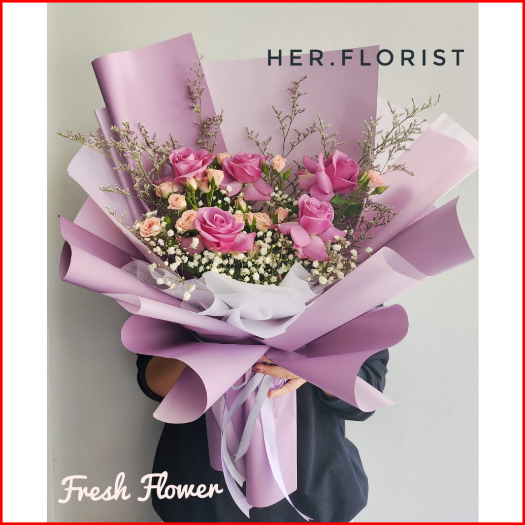Her.florist Fresh Flower 5pcs Rose Bouquet Buket Bunga Mawar Asli Buket Fresh Flower Buket Wisuda