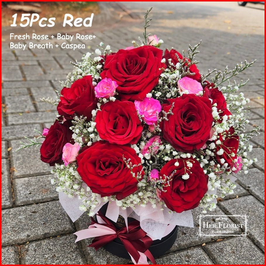 Her.florist Fresh Bloom Box Flower Medium Box Fresh Flower Baby Breath Baby Rose Medium Flower Box