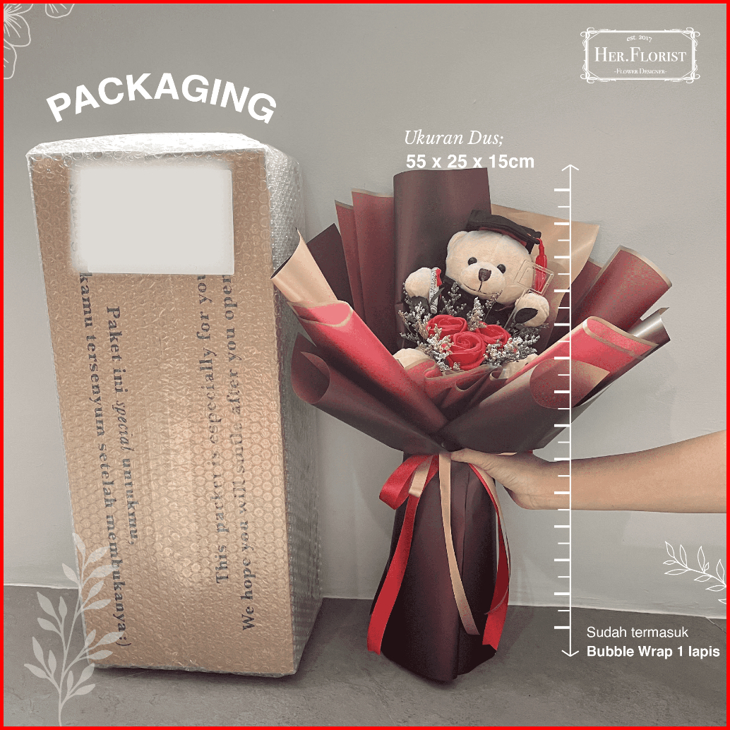 Her.florist Doll 3pcs Soap Flowers Bouquet Buket Bunga Sabun Boneka Graduasi Kado Graduasi Buket Graduasi -big Size