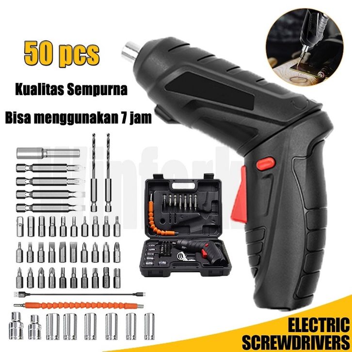 Obeng Elektrik 4.2V Screwdriver Cordless Mesin Bor Baterai Bor Mini Cordless Drill 50 Pcs Set Screwdriver Baterai
