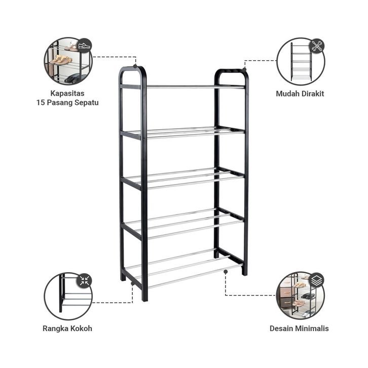 Informa 42X20X79 cm Rak Sepatu 5 Tingkat - Hitam Shoe Rack Organizer Sandal Sepatu Kabinet Alas Kaki Tempat Penyimpanan