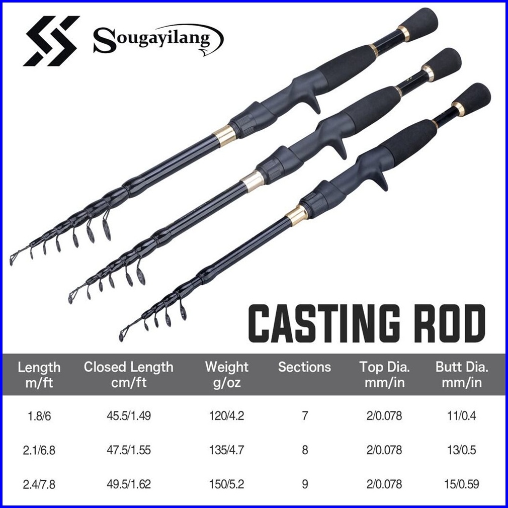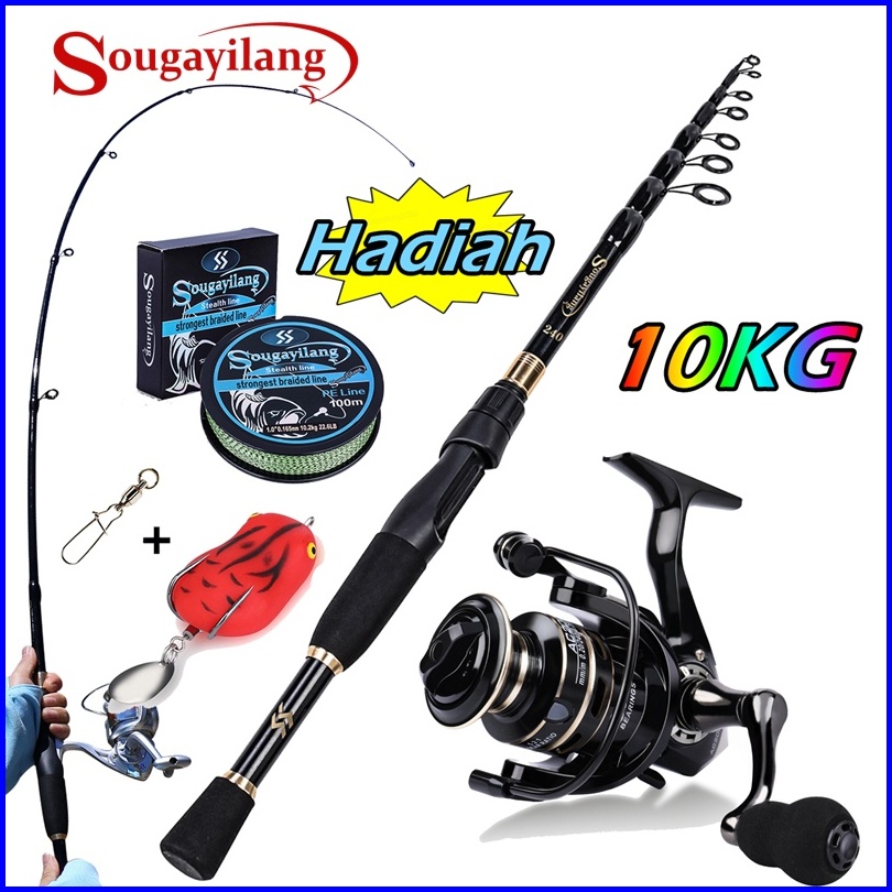 Sougayilang Pancing Set Serat Karbon Joran Pancing Telescopic Is Portabel 1.8-2.4m Dan Reel Pancing Kirim Kado Senar