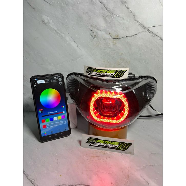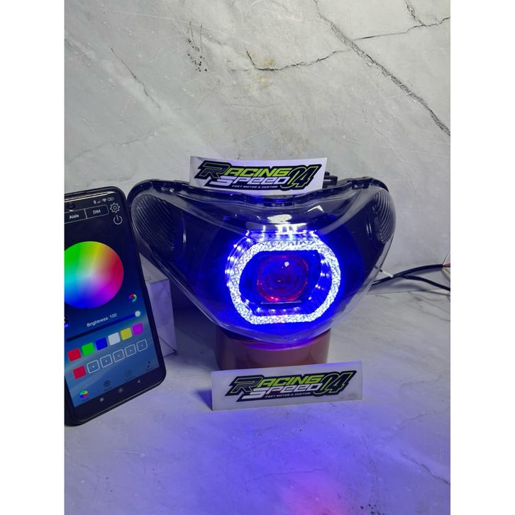 REFLEKTOR LAMPU DEPAN MIO SMILE CUSTOM BILED MATRIX RGB UK 3.5 INCH TINGGALPASANG