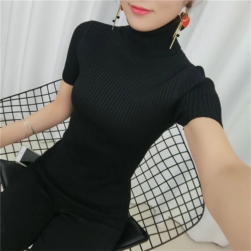 turtleneck rajut wanita korean style atasan tangan pendek Luvita