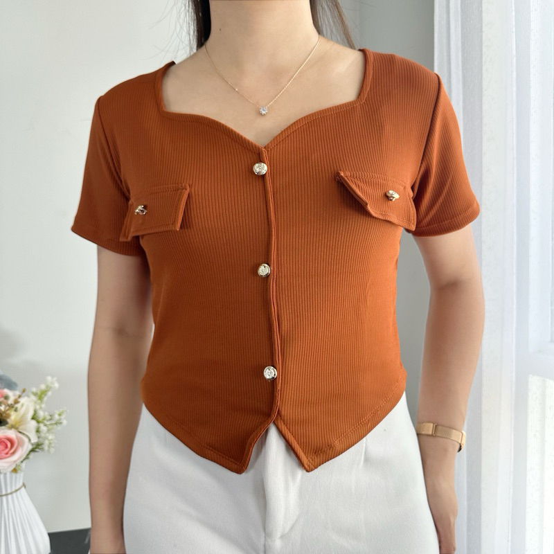 ENMEI Gebby Top 928 - Crop Top Wanita - Atasan Blouse Wanita - Kaos Korean Crop Bahan Knit