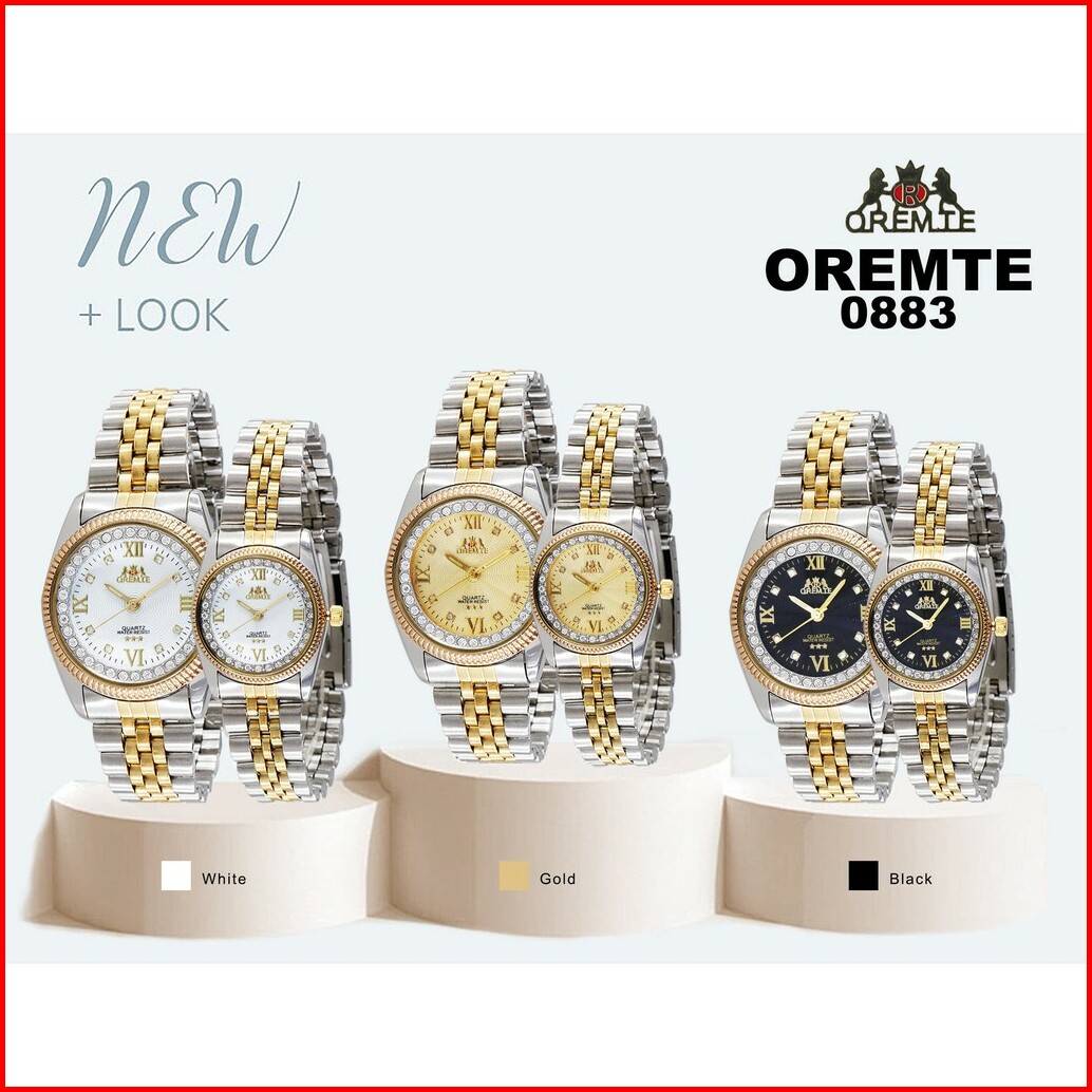 Jam Tangan Oremte Pria Two Tone Diamond Stainless Steel Water Resist 3 Atm Watch Garansi 1 Tahun Free Box