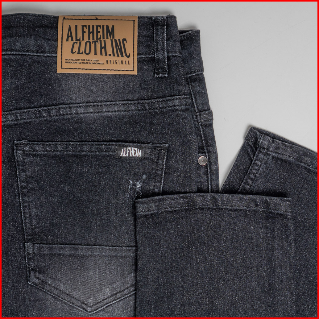 Alfheimcloth.inc - Celana Jeans Long Pants Denim - Slim Fit Men Dark Inferno Washing Ripped Denim S M L Xl