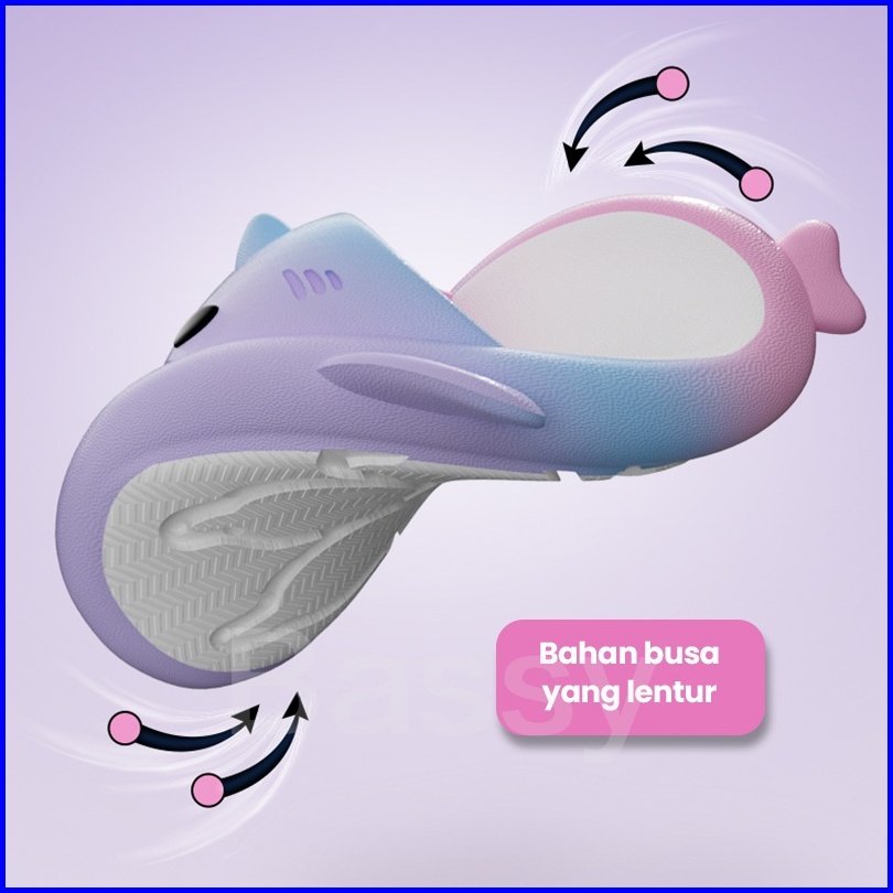 Bassy Sendal Hiu Wanita Sendal Karet Jelly Karakter Sandal Hiu Anak Dewasa Sendal Slop Lucu Sandal Rumah Hsn601