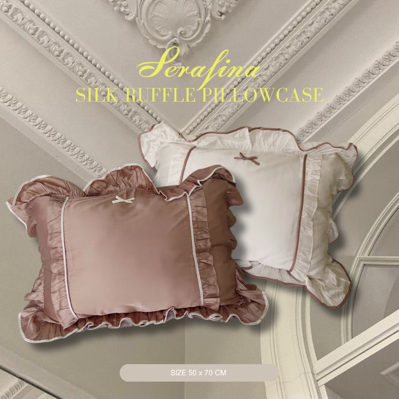 Sarung Bantal Premium Silk Renda Polos Pita Coquette Aesthetic