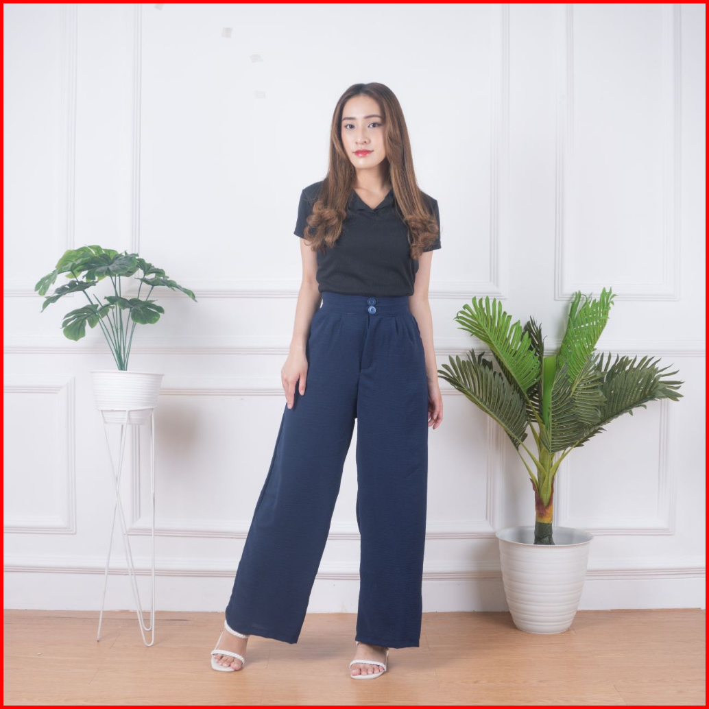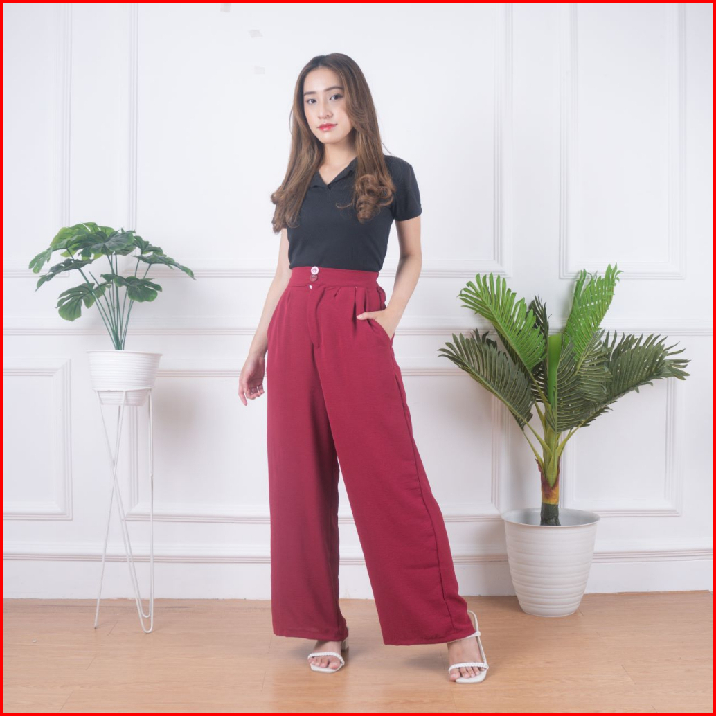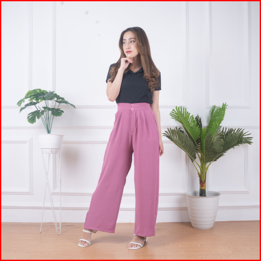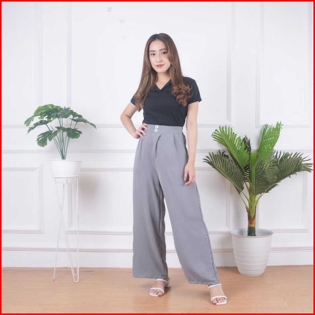 Highwaist Kulot Two Button Cringkel Premium Celana Kulot Laura Slim Kulot Highwaist