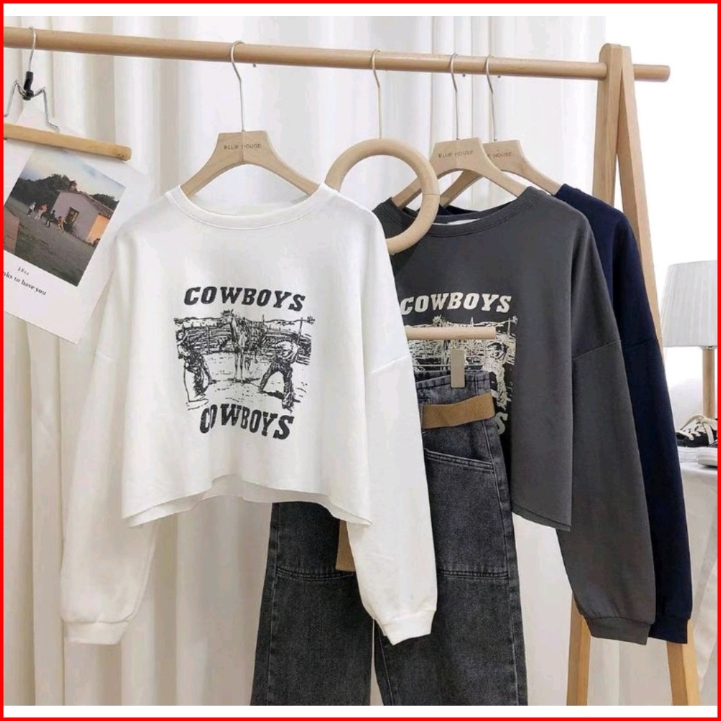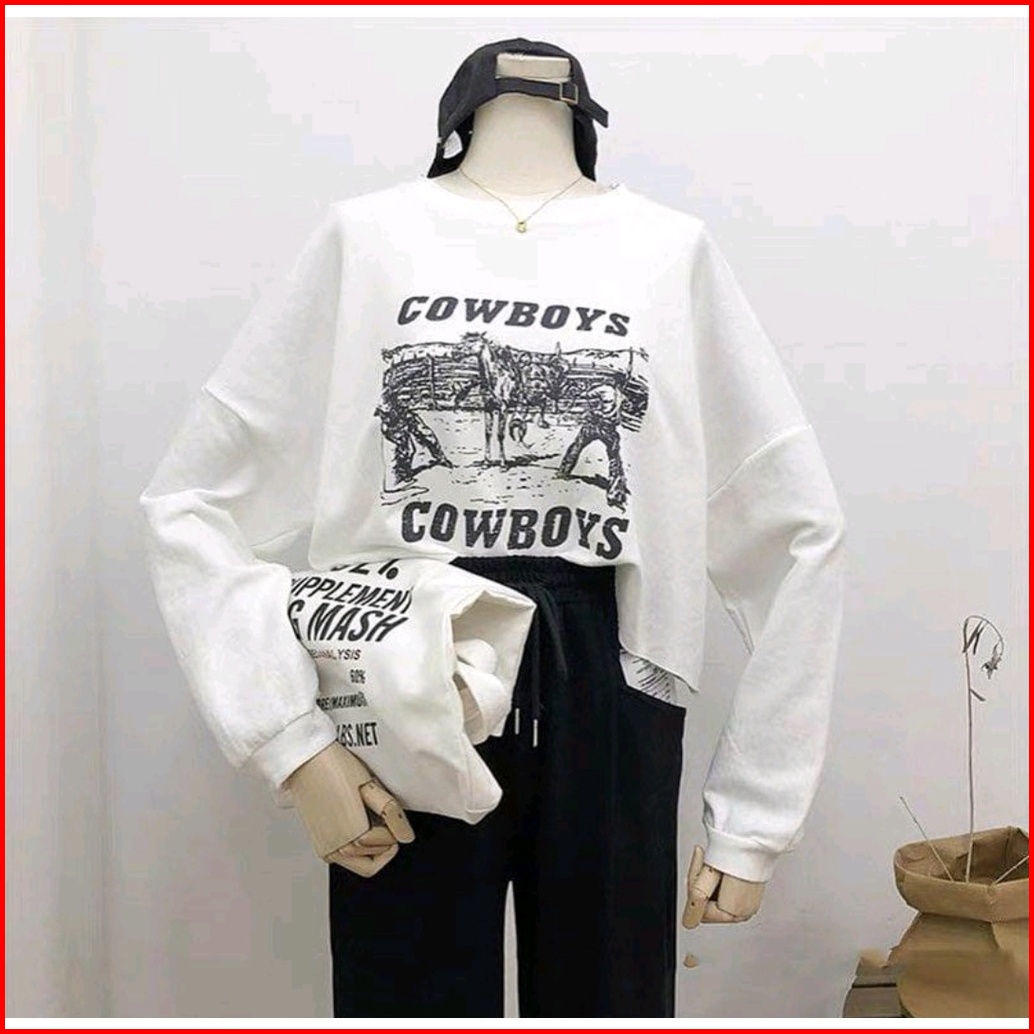 Cowboys Sweater Croope Oblong Crewneck Wanita