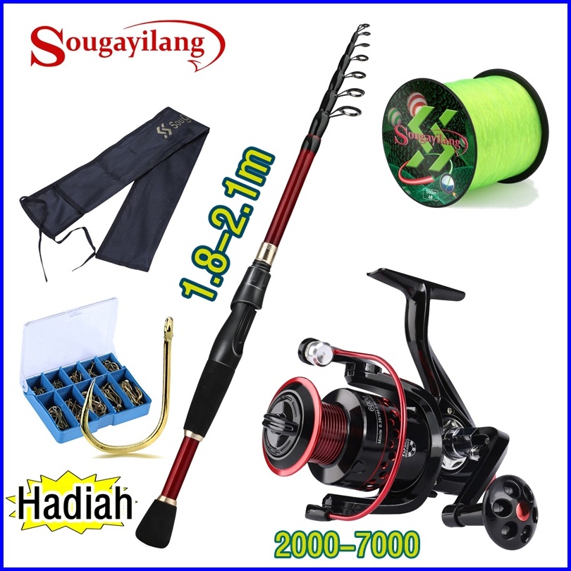Sougayilang Teleskopik Pancing Set 1.8m 2.1m 2.4m Joran Pancing Set Reel Pancing Ukuran 2000-7000 Untuk Memancing Di Lua