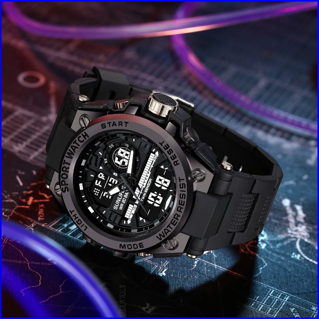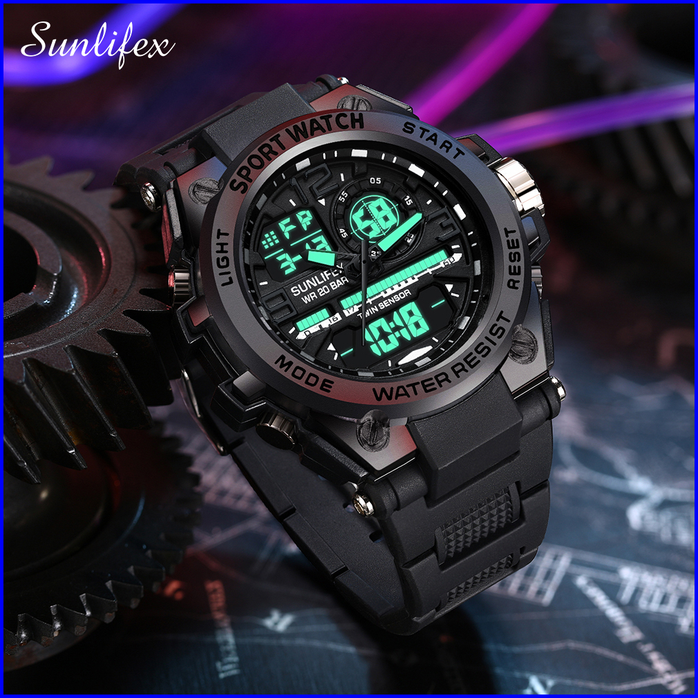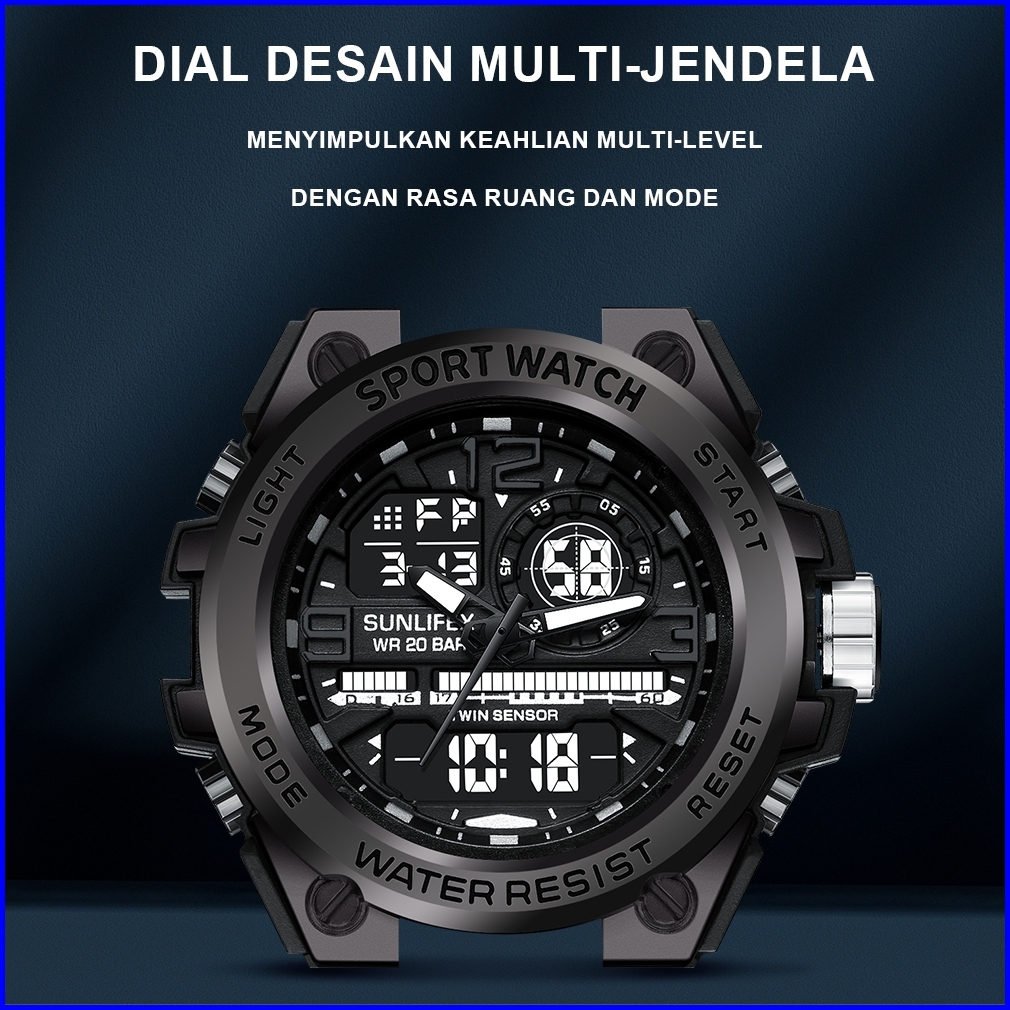 Sunlifex Jam Tangan Pria Digital Analog Olahraga Multifungsi Tali Silikon Jam Tangan Cowok D003