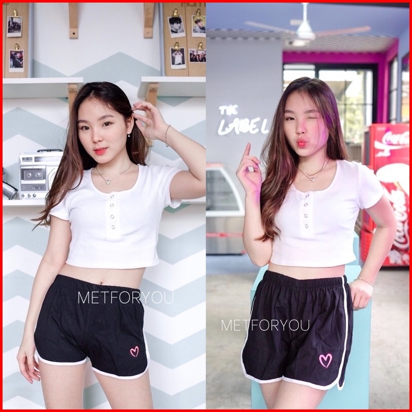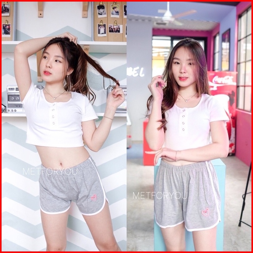 Metforyou Celana Pendek Wanita Santai Korea Hotpants - Love Bordir