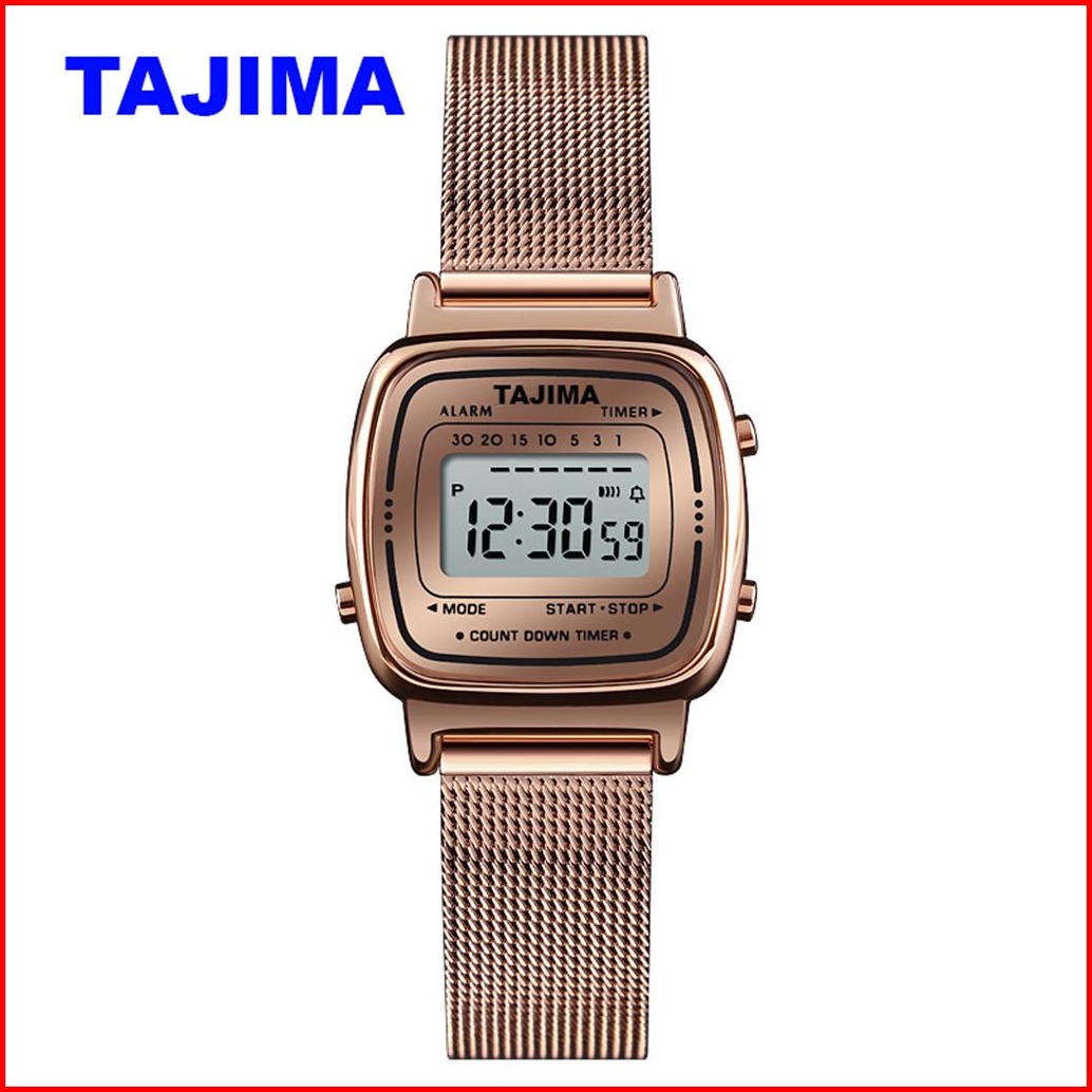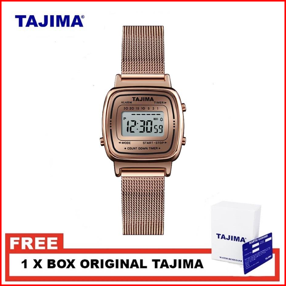 Jam Tangan Wanita Digital Tali Stainless Mesh Tajima 9858 Original Garansi 1 Tahun Free Box