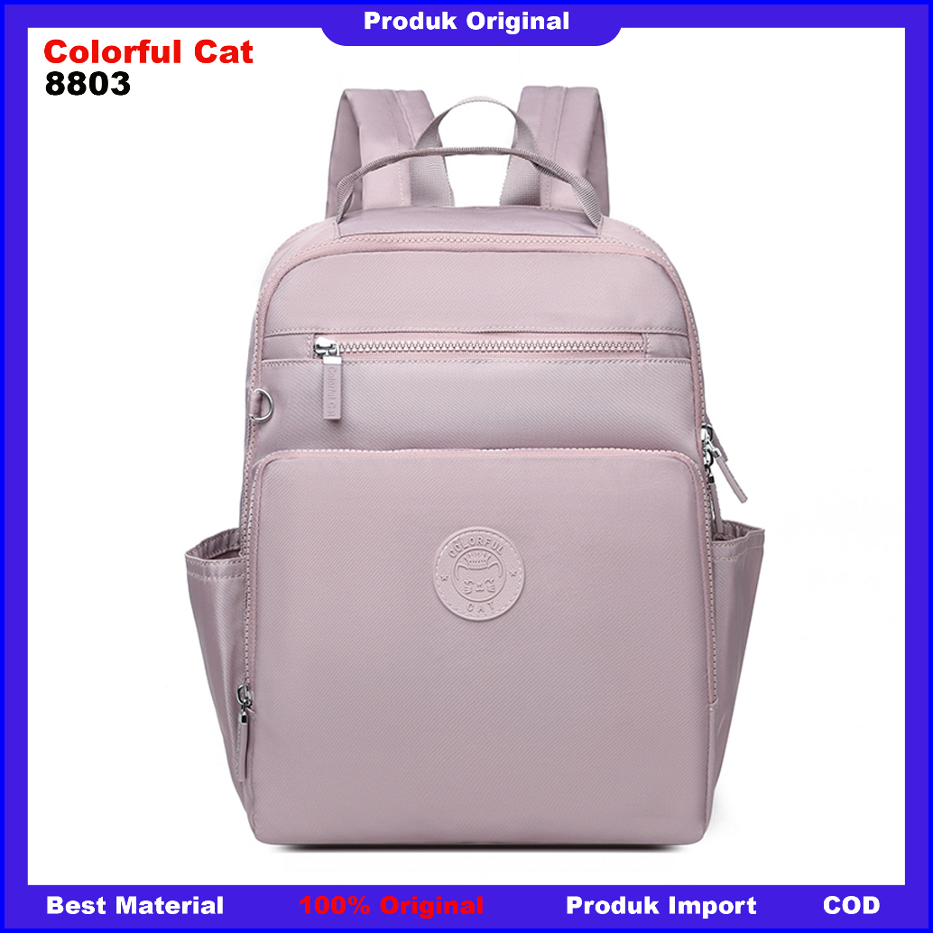 Bobo Fashion - Tas Ransel Colorful Cat 8803 Original Import Nylon Waterproof Tas Sekolah Tas Kuliah Import Wanita Women