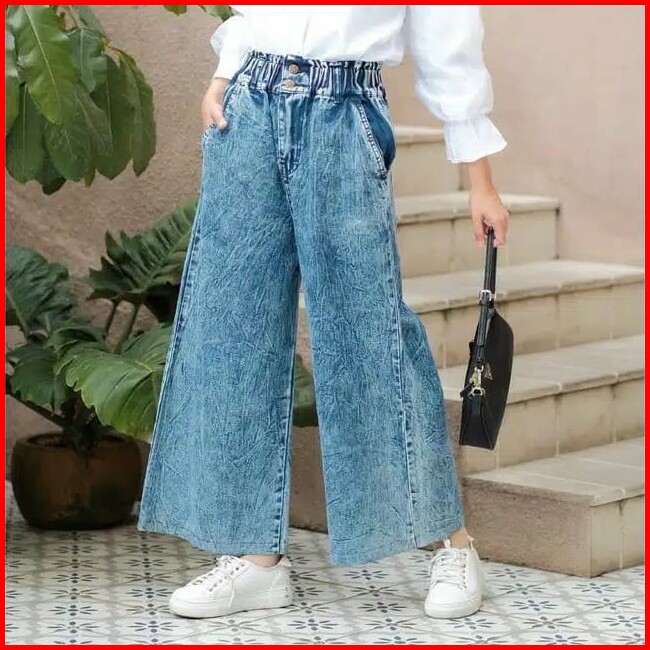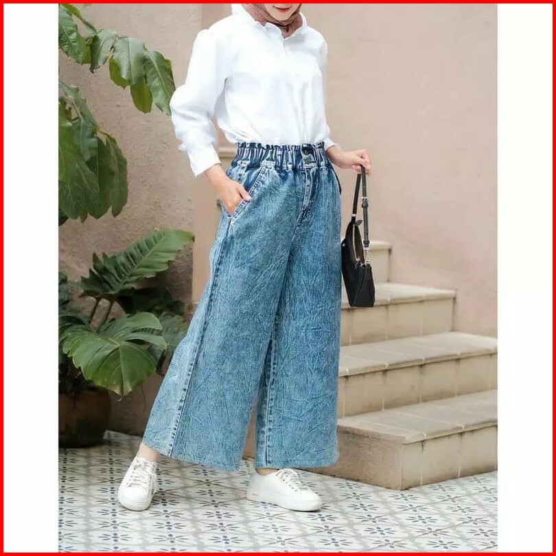 Zolza Kulot Jeans Rawis Snow Kancing Dua Jumbo Jenim Palazzo