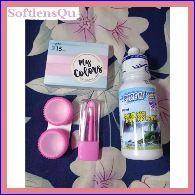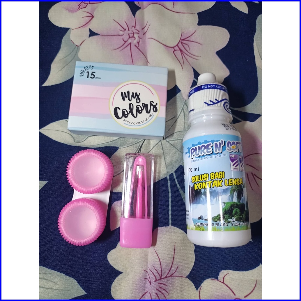 Paket Softlens My Colors Normal Dia 15mm Air Softlens Pure N Soft 60ml Pinset Lenscase