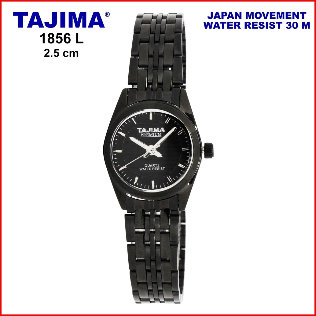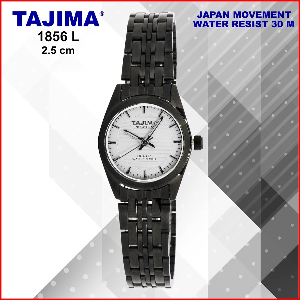 Jam Tangan Tajima Premium Wanita 1856 L Hitam Silver Stainless Steel Original Garansi 1 Tahun Free Box