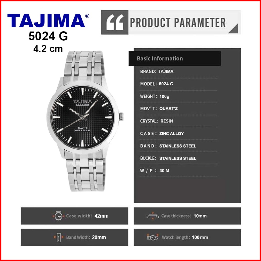 Jam Tangan Pria Tajima Premium 5024 Silver Stainless Steel Water Resist 3 Atm Original Garansi 1 Tahun Free Box