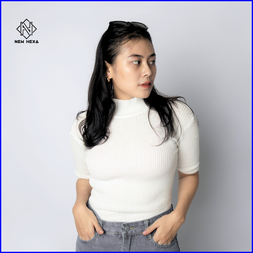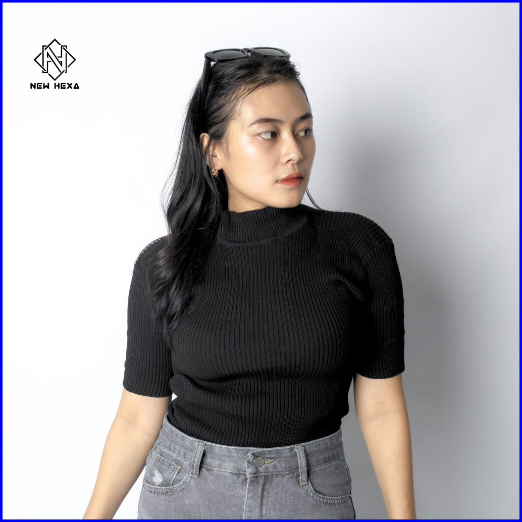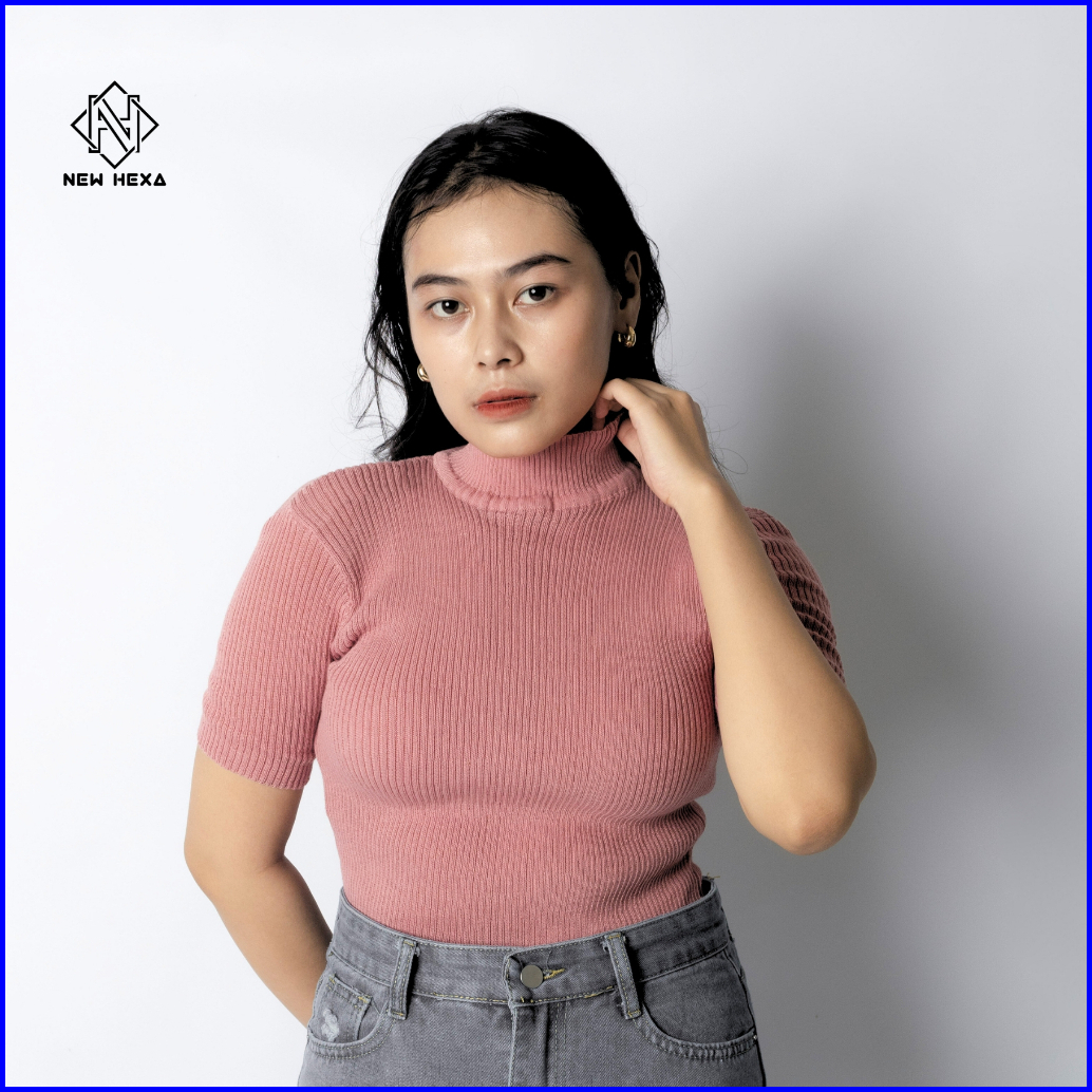 New Hexa Inner Knit Wanita Turtleneck Lengan Pendek