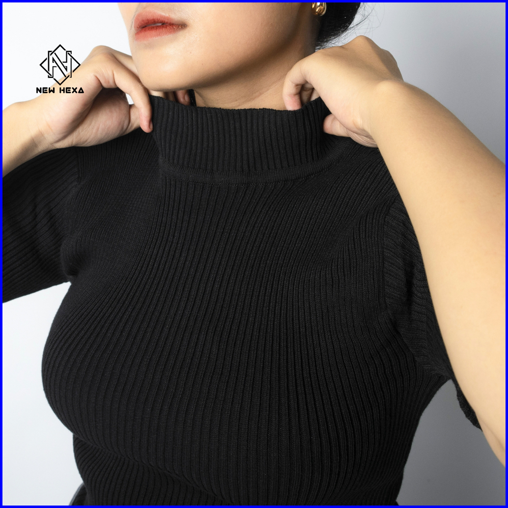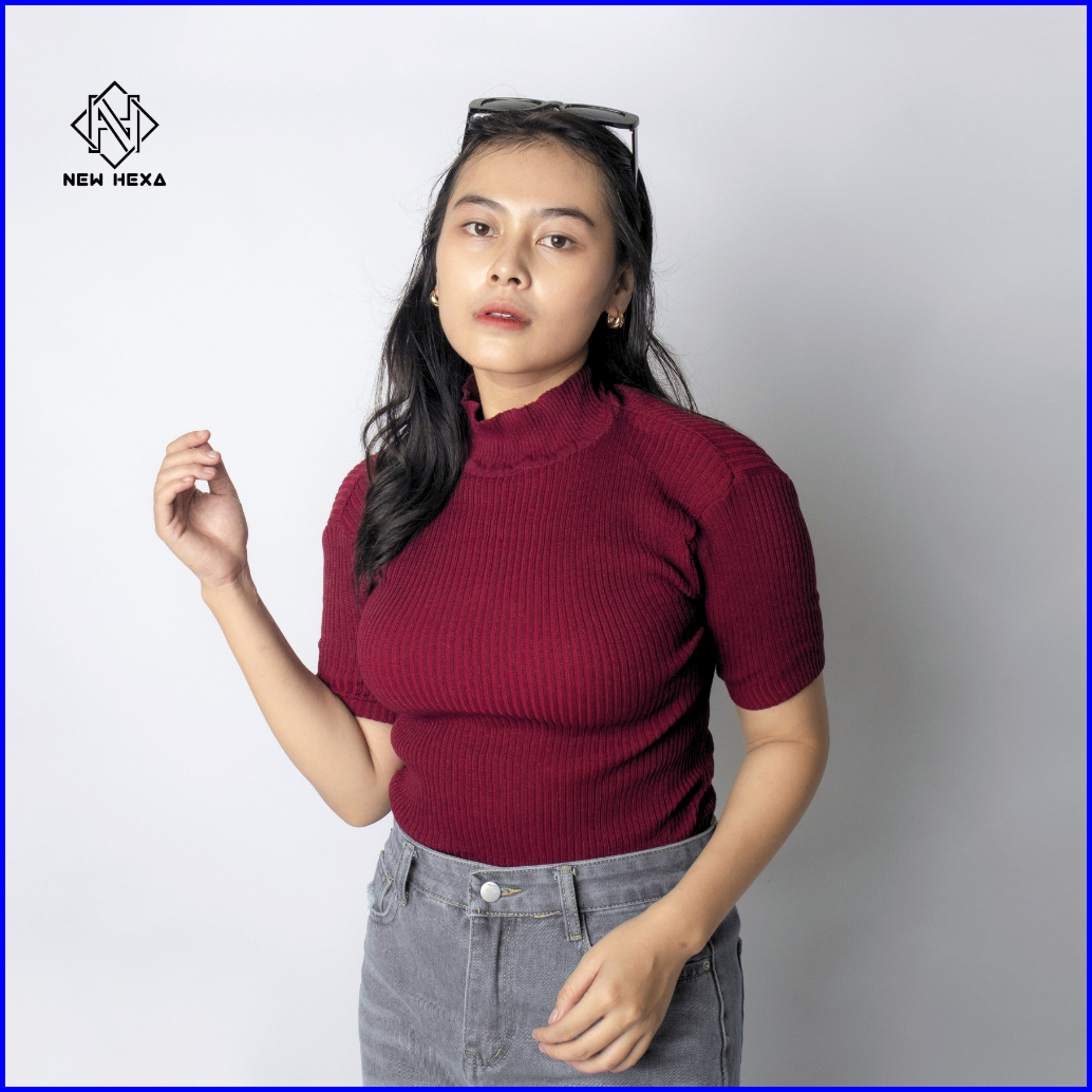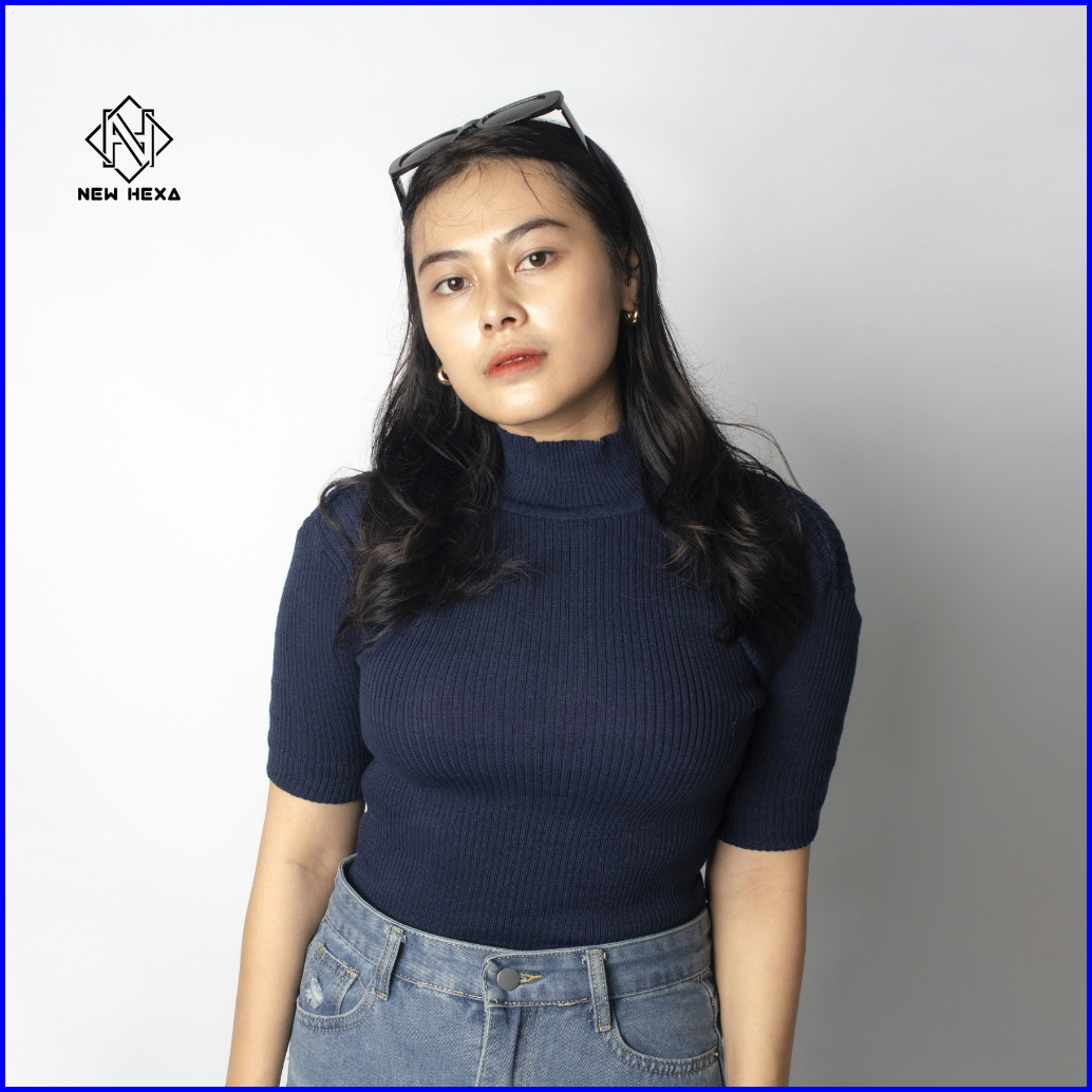 New Hexa Inner Knit Wanita Turtleneck Lengan Pendek