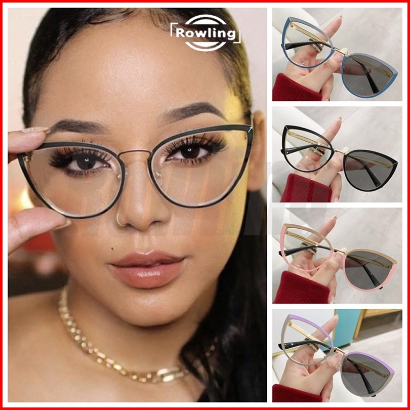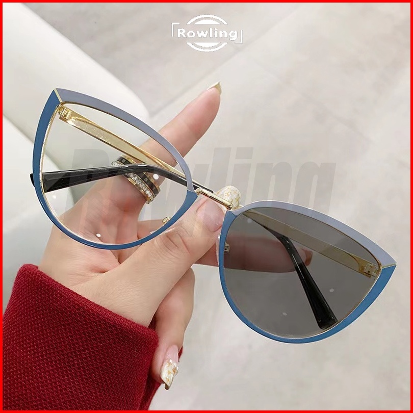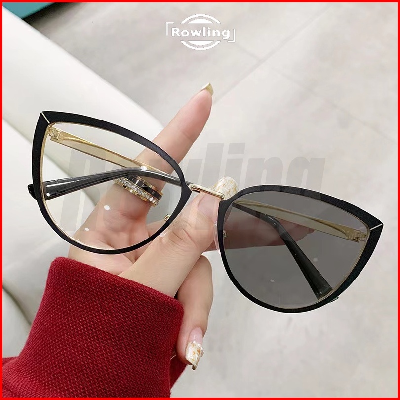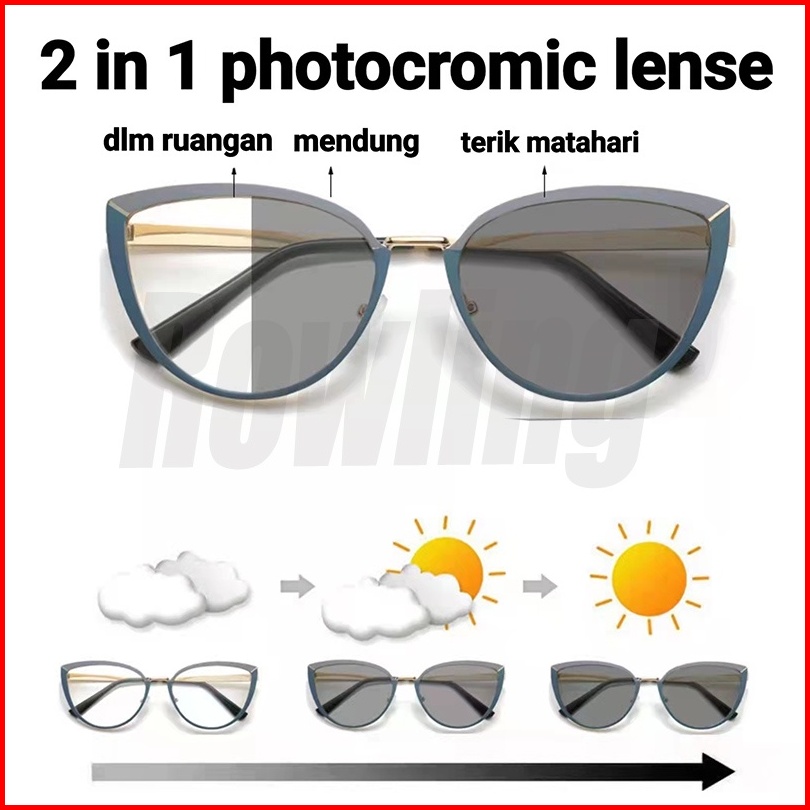 Rowling Pc-304 2 In 1 Kacamata Lensa Photocromic Anti Radiasi Wanita Kacamata Bingkai Titanium Cat Eye Anti Uv Fotocromi