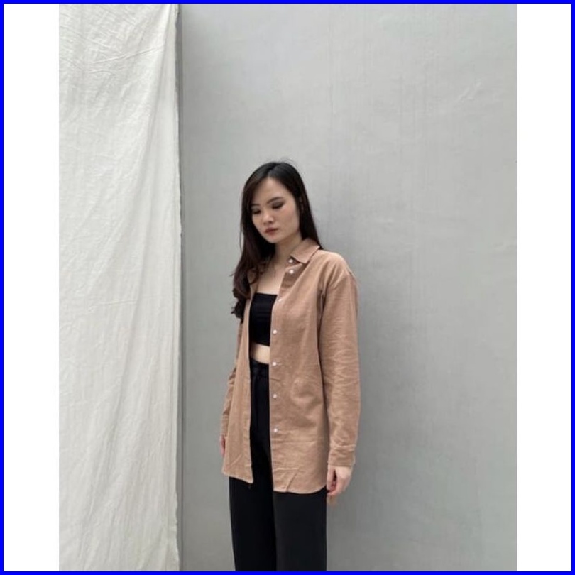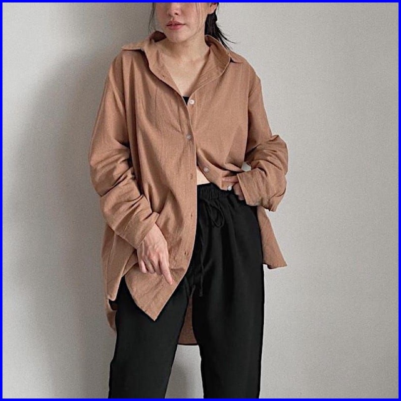 Kemeja Oversize Linen Wanita - Linen Shirt - Atasan Wanita Lengan Panjang 990