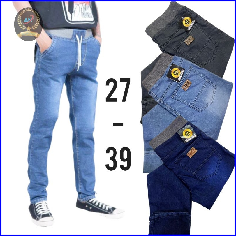 Celana Panjang Cowok Slim Fit Jeans Pinggang Karet Feil