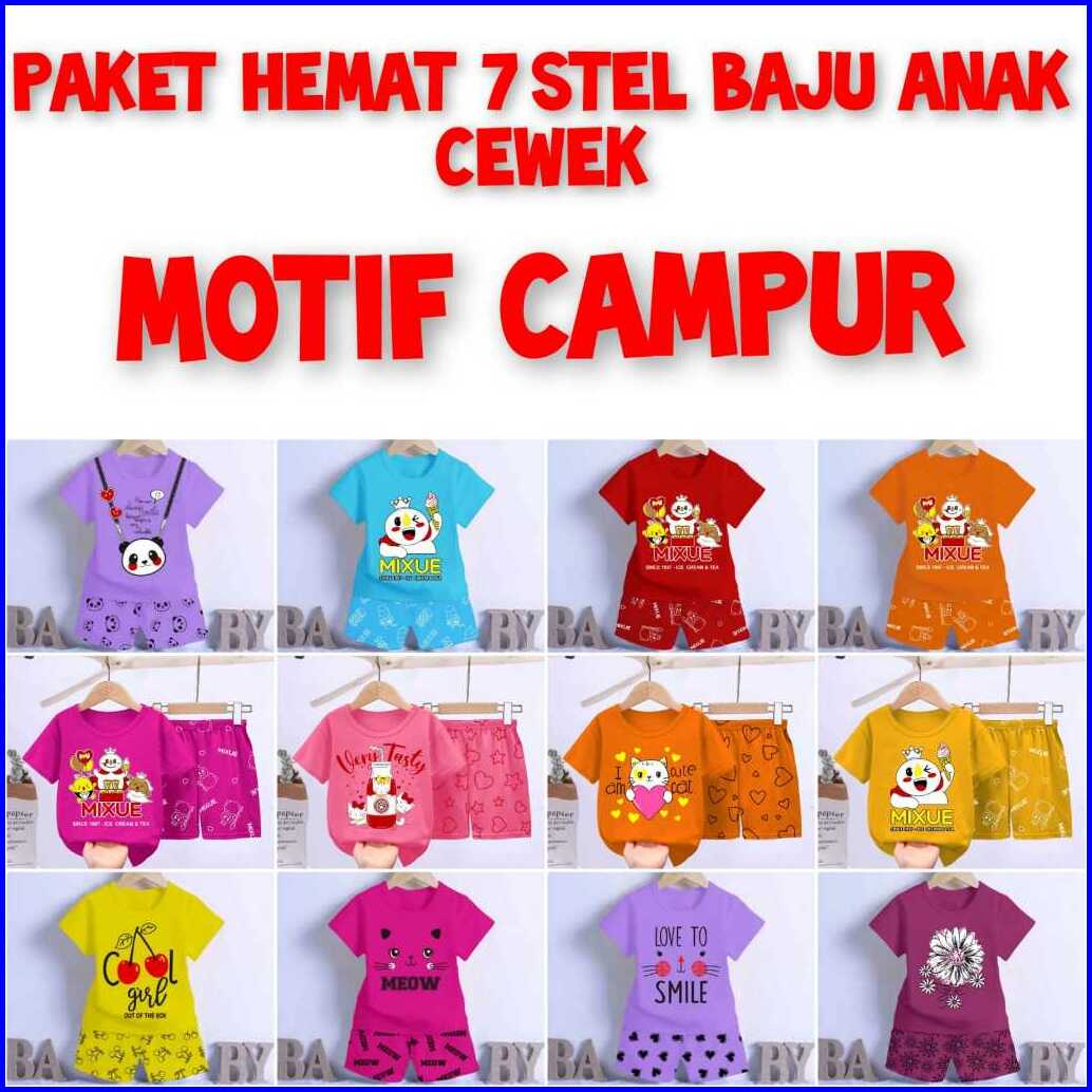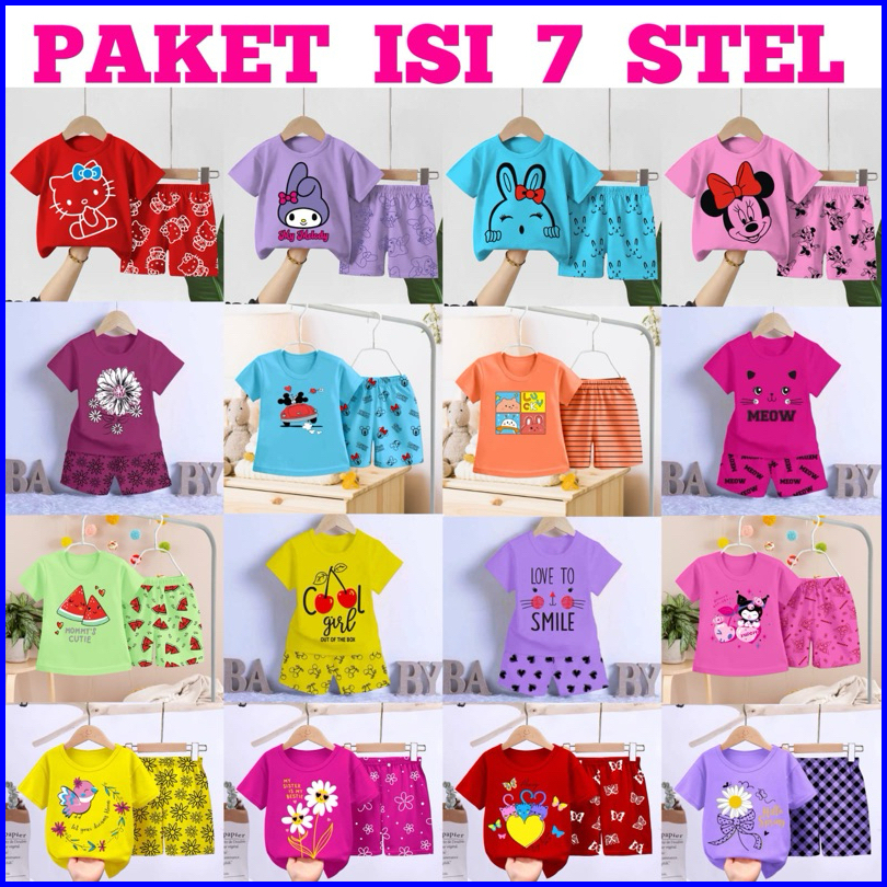 Paket Hemat 7 Stel Setelan Baju Anak Cewek 1 - 6 Tahun