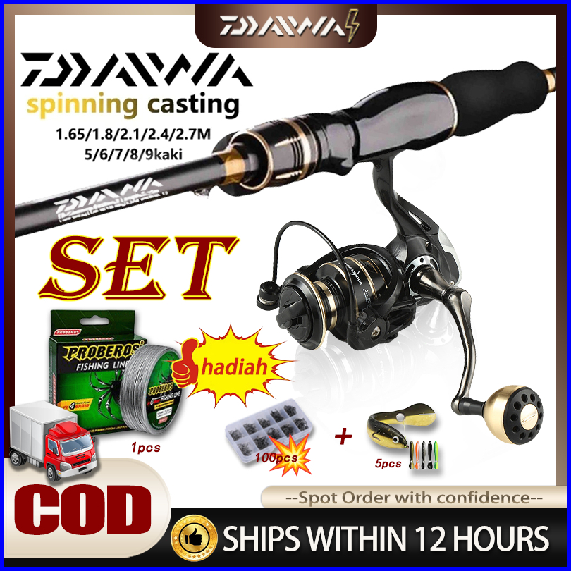 Daiwa Set Pancing 1.8m 2.1m Joran Pancing Umpan Combo Pancingan Set Lengkap Reel Spinning Power Handle Fishing Bc Murah