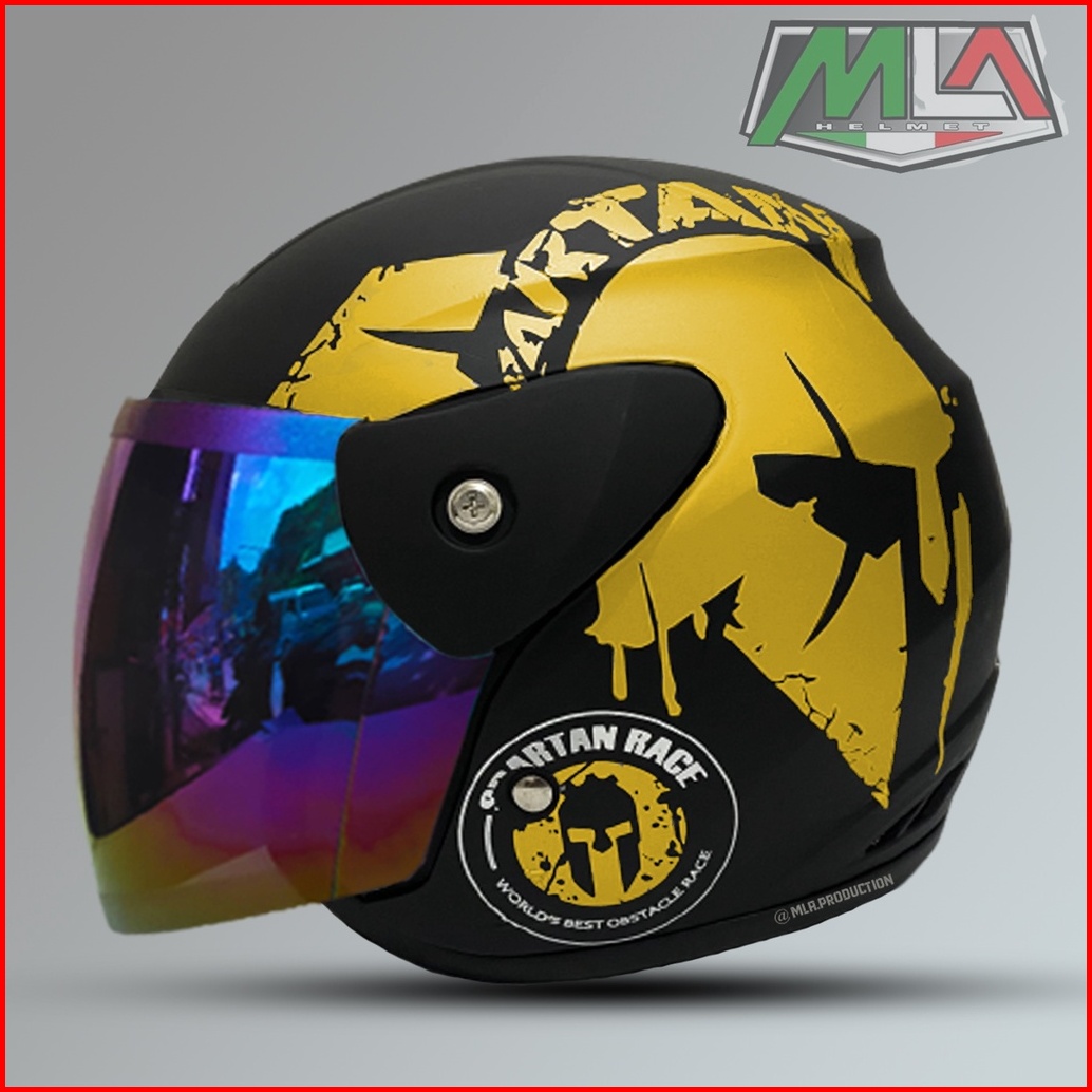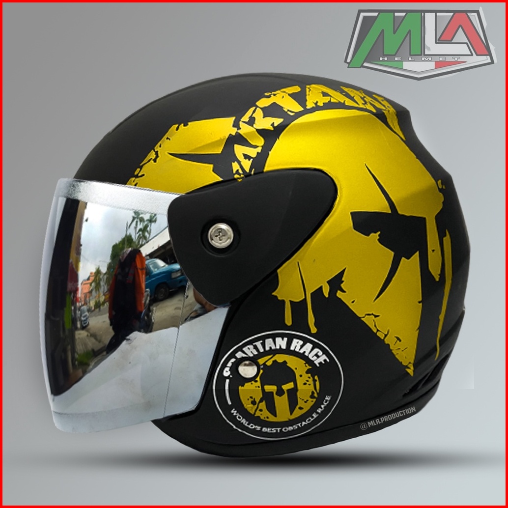 Helm Motor Half Face Evo Inovation Sni Seperti Helm Gm Original Motif Spartan Kaca Silver Kaca Pelangi Premium Untuk Hel